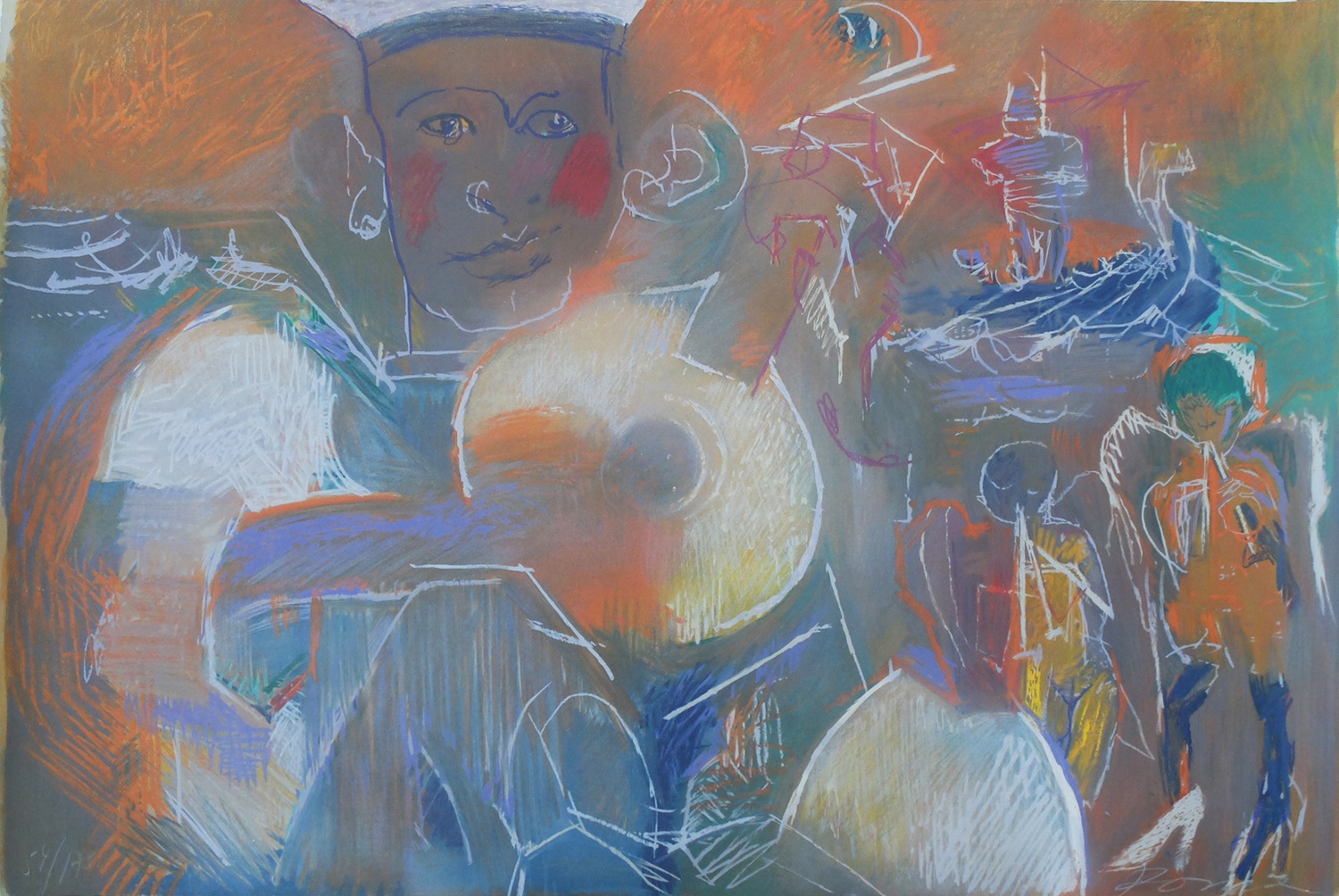 Born in Lisbon, Portugal in 1926, Júlio Pomar is one of the greatest Portuguese artists of the twentieth century. His work features a wide variety of styles, which include design, printmaking, sculpture, illustrations, ceramics, tapestries, theatre design, as well as essays and poetry about painting, all of which strongly demonstrate Pomar’s talents and his tireless effort in pursuing and exploring the arts.