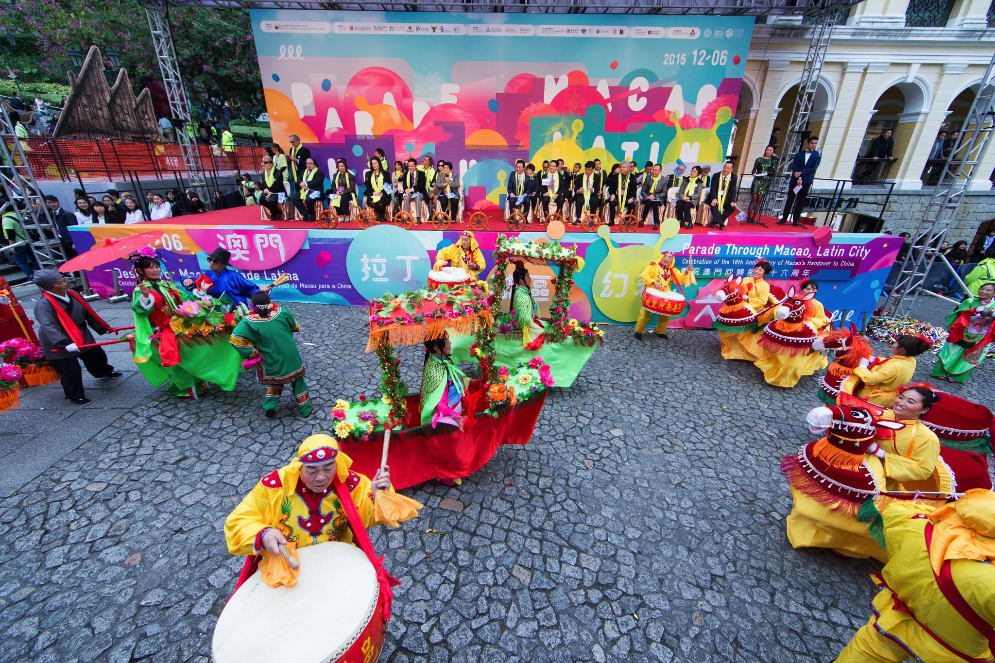 In celebration of the 16th anniversary of Macao’s handover to China and the 10th Anniversary of the inscription of “The Historic Centre of Macao” on World Heritage List, the “Parade through Macao, Latin City” was held on Sunday, 6 December, with “Fantastic VIVA Treasure Hunt Adventure” as theme and “An Annual Celebration for the Entire City - VIVA” as motto again. VIVA led the public into a fantastic adventure, uncovering mysterious treasures and promoting the ideals of “Peace, Love and Cultural Integration”, celebrating the handover together. It attracted over 1,000,000 audience including those who presented at the parade, those who watched the live broadcast from television and those who watched from outdoor screens at various locations.