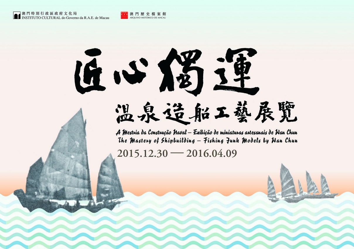 The exhibition “The Mastery of Shipbuilding – Fishing Junk Models by Wan Chun” will be open to the public at the gallery of the Historical Archives of Macao from 30 December 2015 to 9 April 2016, from 10:00am to 6:00pm except on Sundays and public holidays. Admission is free. For more information, please visit the Historical Archives of Macao website: www.archives.gov.mo or call the HAM through tel. (853) 2859 2919 for enquiries during office hours.