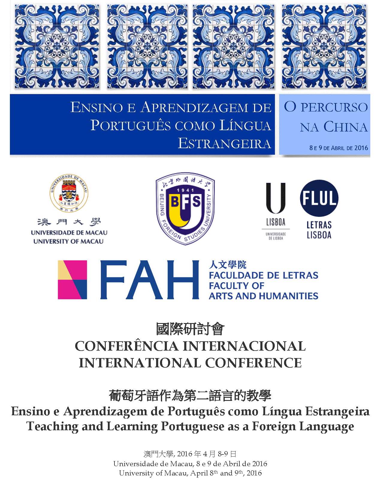 The conference is organised by the University of Macau (UM), the University of Lisbon and Beijing Foreign Studies University.