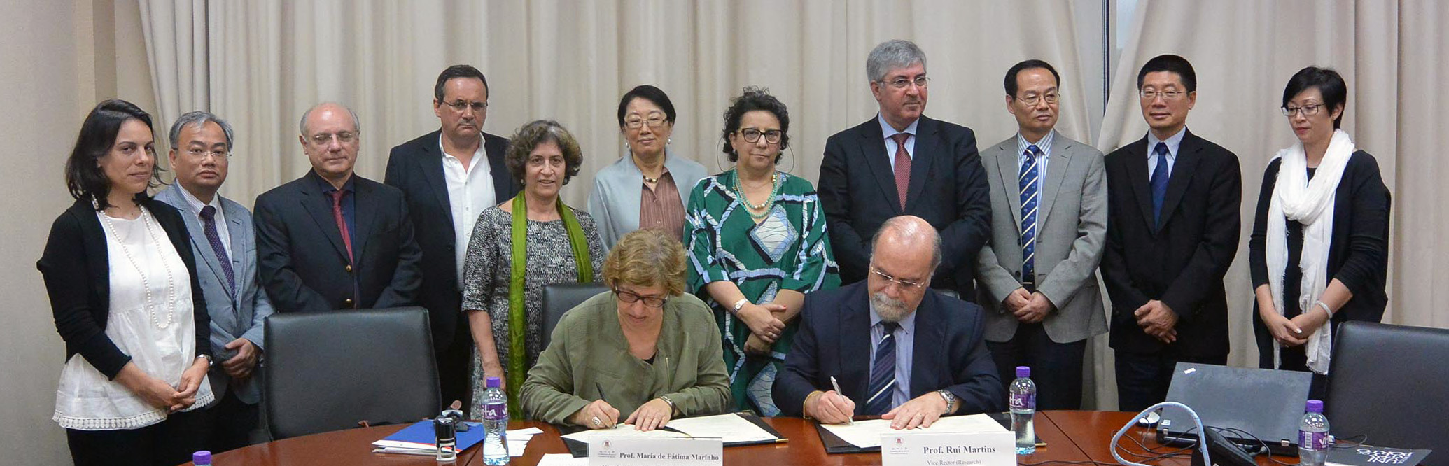 The agreement was signed by Prof Fátima Marinho and Prof Rui Martins. The signing ceremony was witnessed by Prof Amélia Ferreira, dean of UP’s Faculty of Medicine; Prof António Sousa Pereira, dean of UP’s Institute of Biomedical Sciences; Prof Luís Baldaia, vice dean of UP’s Institute of Biomedical Sciences; Prof Vladimiro Miranda, professor of UP’s Faculty of Engineering and researcher of the Institute for Systems and Computer Engineering, Technology and Science (INESC-TEC); Prof Isabel Margarida Duarte, professor of UP’s Faculty of Arts and director of the Master of Teaching Portuguese as a Foreign/Second Language Programme; Prof Hong Gang Jin, dean of UM’s Faculty of Arts and Humanities; Prof Ge Wei, associate dean of UM’s Faculty of Health Sciences; Prof Tam Kam Weng, associate dean of UM’s Faculty of Science and Technology; and Prof Richard Dequan Ye, deputy director of UM’s Institute of Chinese Medical Sciences.
