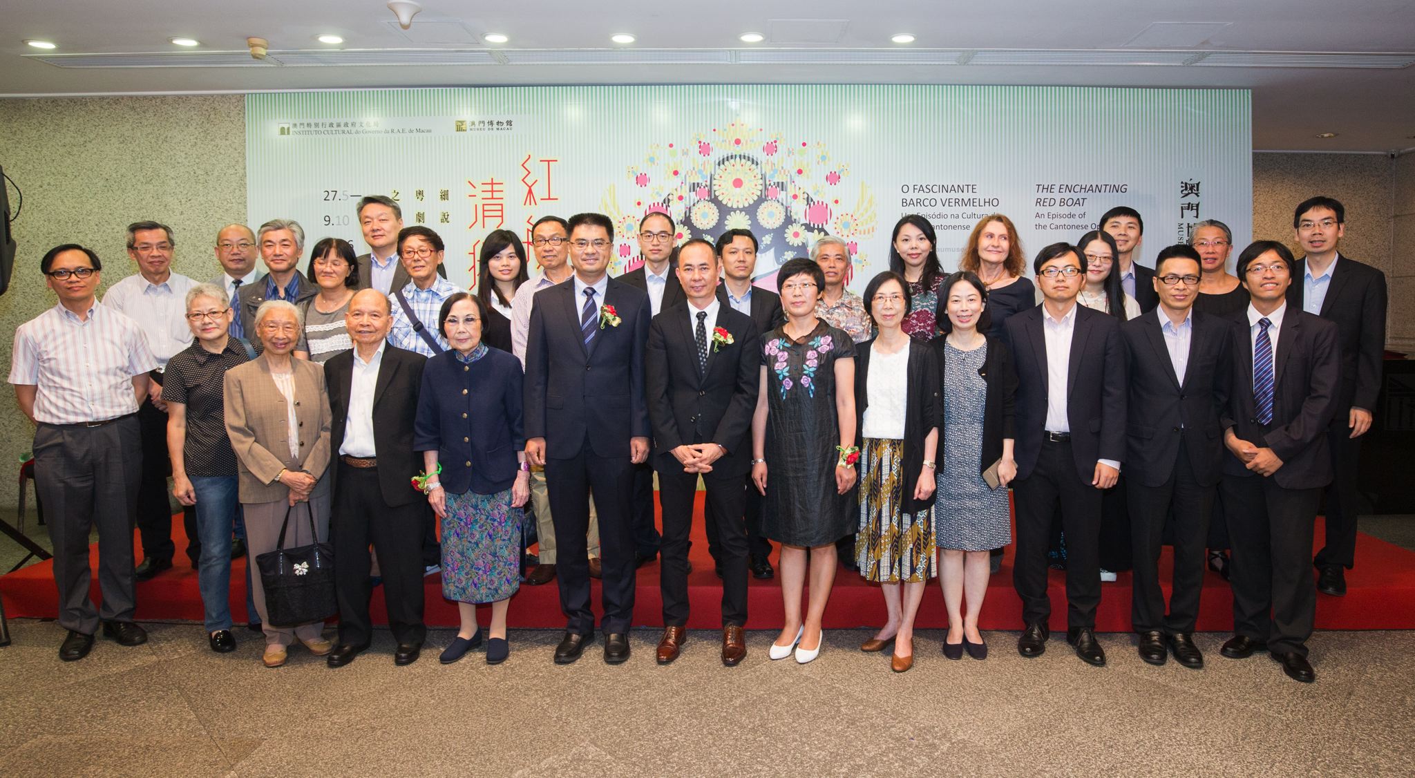 In order to promote the art of Cantonese Opera, the exhibition “The Enchanting Red Boat – An Episode of the Cantonese Opera Culture”, organised by the Macao Museum under the auspices of the Cultural Affairs Bureau, was inaugurated on Thursday, 26th May, at 6pm, in the lobby of the Macao Museum. The opening ceremony was officiated by the President of the Cultural Affairs Bureau, Ung Vai Meng; the Deputy Director of the Department of Education and Culture of the Liaison Office of the Central People's Government in the Macao S.A.R., Zhao Chuan Dong; the Deputy Director of Foshan Museum, Wang Haina; the President of the Macao General Association of Cantonese Opera, Lam Fong Ngo and the member of the Cultural Consultative Committee, Tong Mui Siu. As part of the programme of the 27th Macao Arts Festival, the exhibition is open to the public until 9th October.