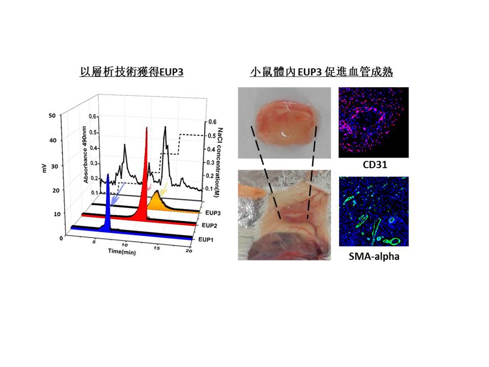 Led by Dr Wang Chunming from the ICMS, the research team started with extensive literature search and raw material screening before they successfully derived a natural polysaccharide from the medicinal herb Eucommia ulmoides. Experiments on mice suggest that the carbohydrate molecule can bind growth factors to simulate angiogenesis. Further investigations into this carbohydrate may lead to the development of new tools for therapeutic angiogenesis.