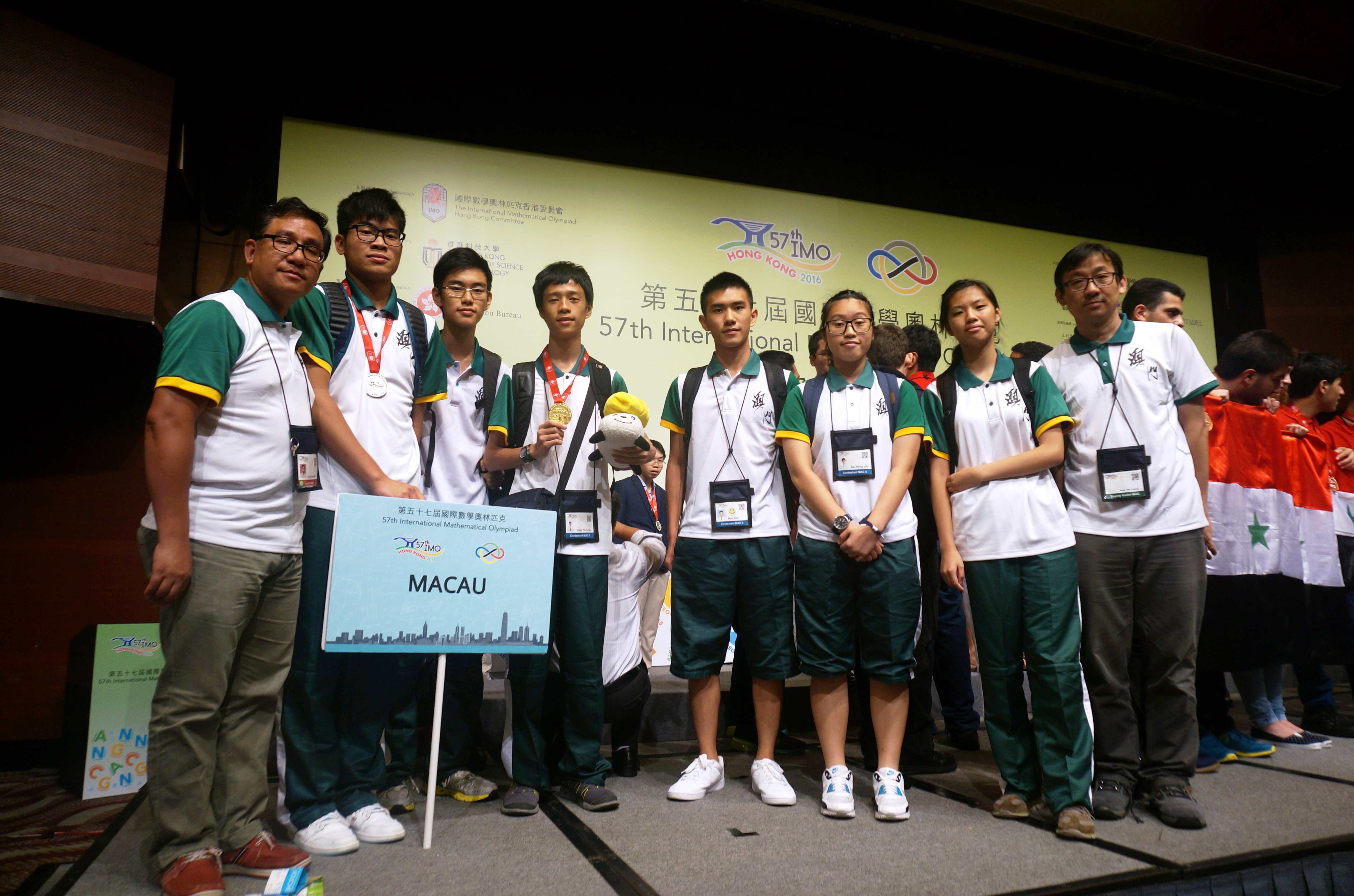 A team of pre-college students from Macao, led by Dr Leong Ieng Tak and Mr Wan Lung Yam from the University of Macau (UM), Faculty of Science and Technology, Department of Mathematics, won a gold medal and a silver medal at the 57th International Mathematical Olympiad (IMO) held in Hong Kong. This is the first time in 25 years that a team from Macao has won a gold medal at this competition.