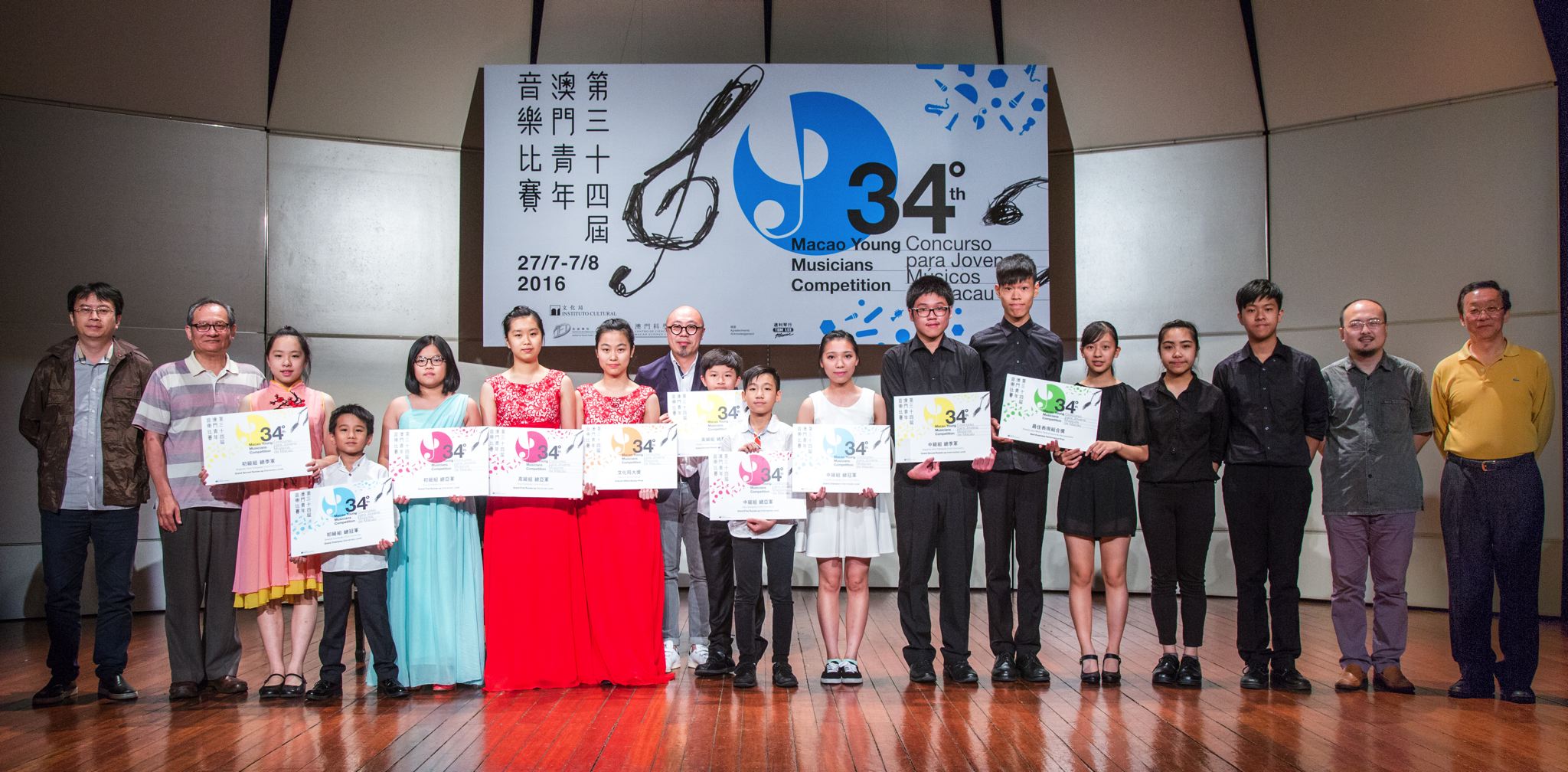 The Competition for Special Awards in each level was also extraordinary, and all participants gave their best in the performance. The Grand Champion at Elementary Level of the Grand Special Final was cellist Han Pok Man, the Grand First Runner-Up was Yangqin instrumentalist Lam Cheng Kei and the Grand Second Runner-Up was Guzheng instrumentalist Sou Chi Kei. In intermediate level, the Grand Champion was Guzheng instrumentalist Chan Weng Chi, the Grand First Runner-Up was percussionist Ip Chon Fong and the Grand Second Runner-Up was tuba instrumentalist Lao Ut Long. At advanced level, the Grand Champion, the Grand First Runner-Up and the Grand Second Runner-Up were, respectively, Guzheng instrumentalist Siu Lai Na (also winner of the Cultural Affairs Bureau Prize), Erhu instrumentalist Choi Hio Lam and violinist Hou Chengyi. The percussion ensemble formed by U Ngai Un, Wong Hio Man, Choi Chi Meng and Lai Weng Ka won the Award for Best Group Performance.