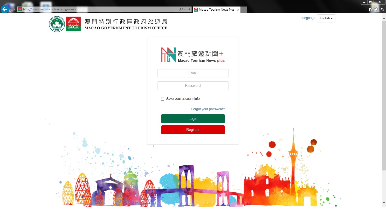 At present, journalists and editors working for local media agencies and overseas members of the press recommended by MGTO representatives (http://en.macaotourism.gov.mo/main/contactus.php) are welcome to register for a user account at the Macao Tourism News plus (http://newsplus.macaotourism.gov.mo). Based upon the status of operation, the Office will open up the platform to more media users, in hope that more members of the press can access the database of Macao tourism news and enjoy the service for free.