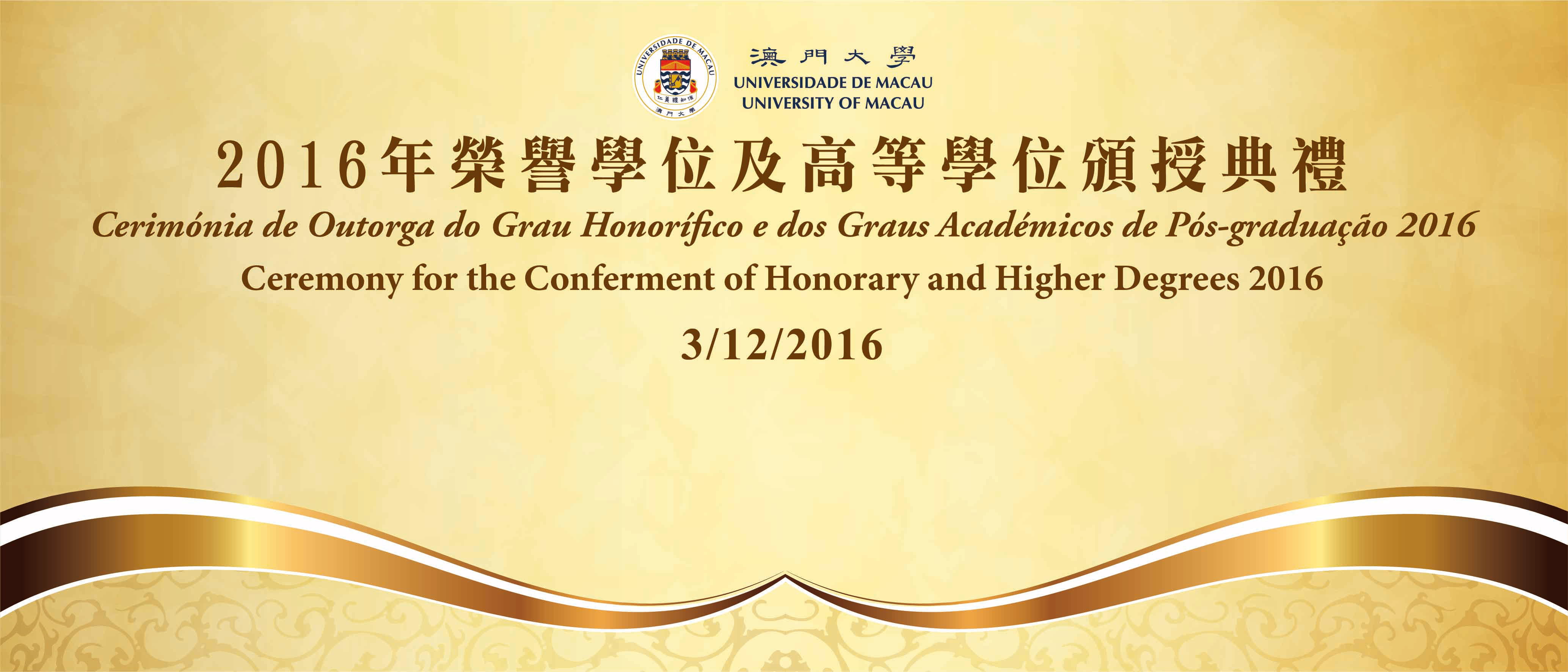 The University of Macau (UM) will hold the Ceremony for the Conferment of Honorary Degrees and Higher Degrees 2016 on 3 December (Saturday) at 5:00pm in the University Hall. PhD degrees and master’s degrees will be presented at the ceremony. A Doctor of Social Sciences honoris causa degree will be conferred on the educator Dr Tse Chi Wai for his contributions to education and societal development.