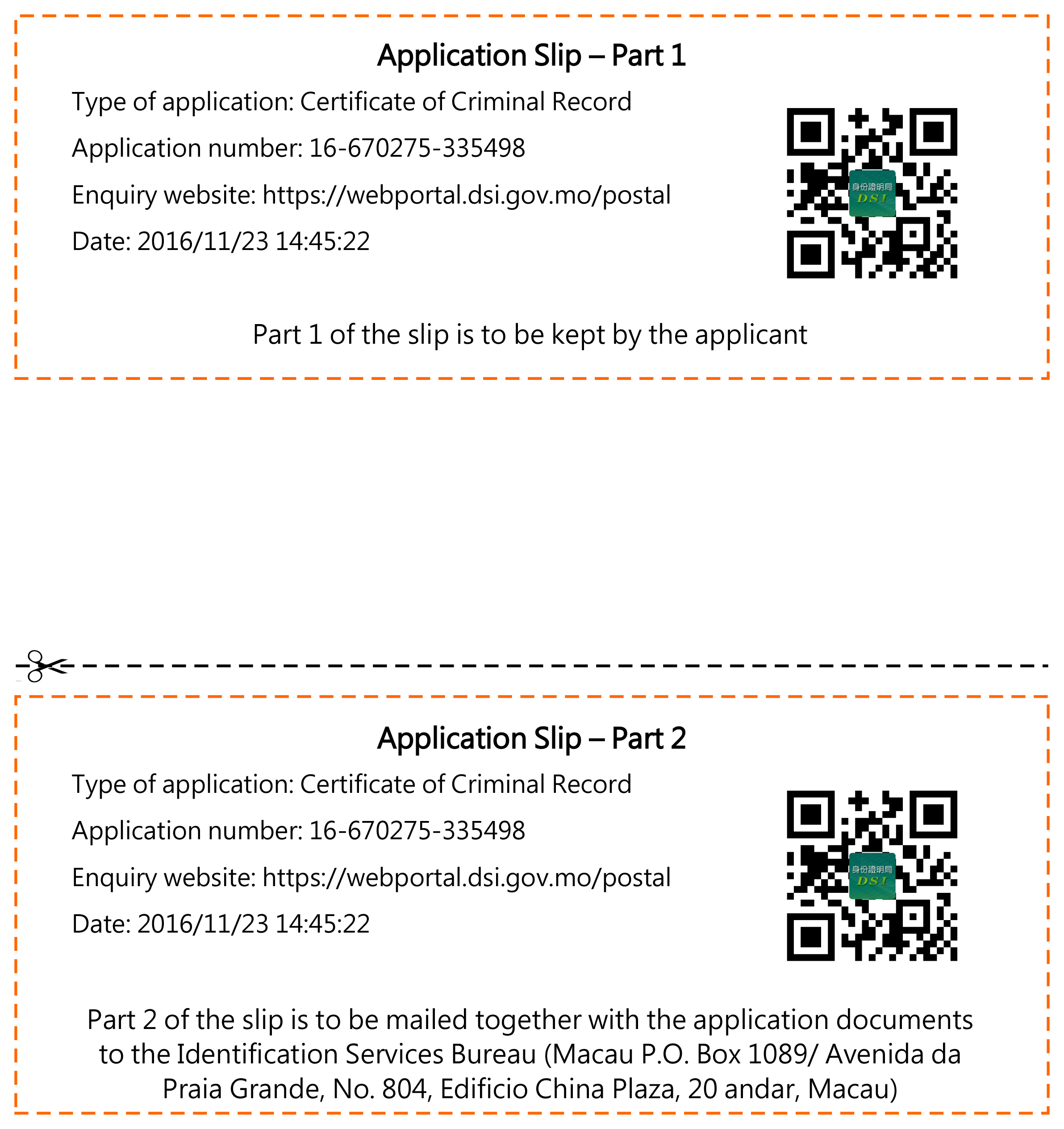 To be in line with the governance principle of the Special Administrative Region Government, the Identification Services Bureau (hereinafter referred to as DSI) keeps on studying and developing electronic services and simplifying administrative procedures. Starting from 5 December 2016, DSI introduces online application status enquiry and payment service for the aim of improving the formalities of the postal application for the Certificate of Criminal Record and Macao Special Administrative Region travel documents. Applicants from abroad can log in the “Postal Application Service” system in the website of DSI (webportal.dsi.gov.mo/postal) to check the status of their postal application and pay the application fee and postage with credit card.