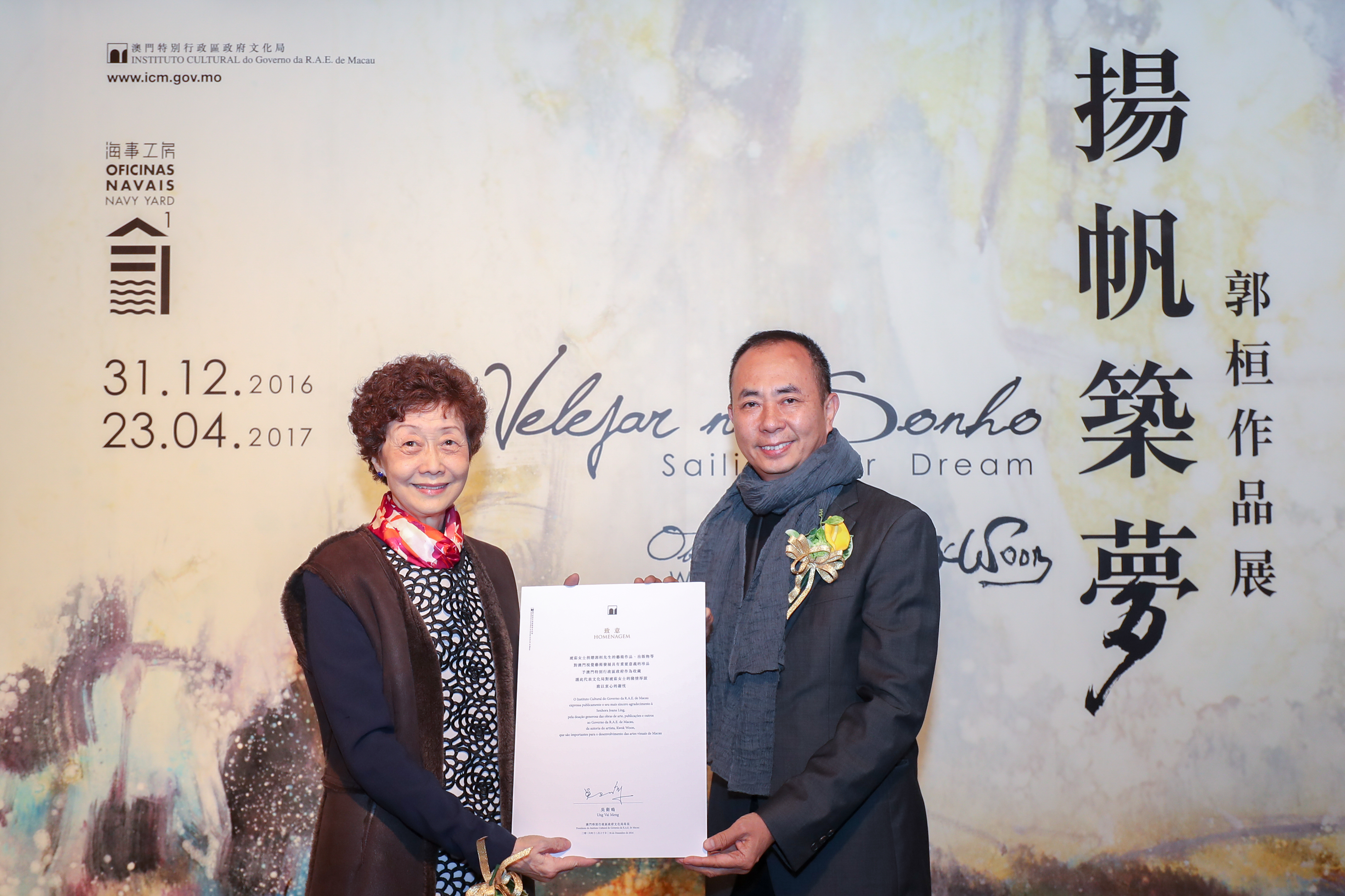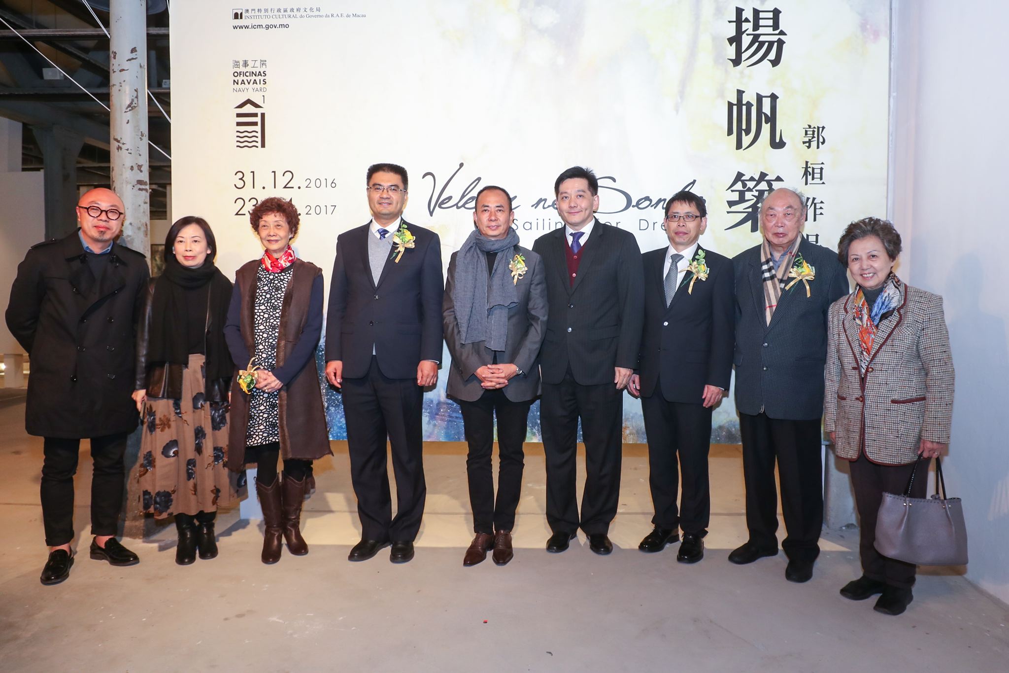 The Cultural Affairs Bureau organises the exhibition “Sailing for Dream — Works by Kwok Woon” at the Navy Yard No. 1, featuring over 40 works by the artist Kwok Woon. The opening ceremony was held on Friday, 30 December, at 6:30pm, and was officiated by the President of the Cultural Affairs Bureau, Ung Vai Meng; the Deputy Director of the Department of Education and Culture of the Liaison Office of the Central People’s Government in the Macao S.A.R., Zhao Chuandong; the Deputy Director of the Department of Public Diplomacy and Information of the Office of the Commissioner of the Ministry of Foreign Affairs of the People’s Republic of China in the Macao S.A.R., Li Xiaoquan; the wife of Kwok Woon, Joana Ling; and the veteran Macao artist, Mio Pang Fei.