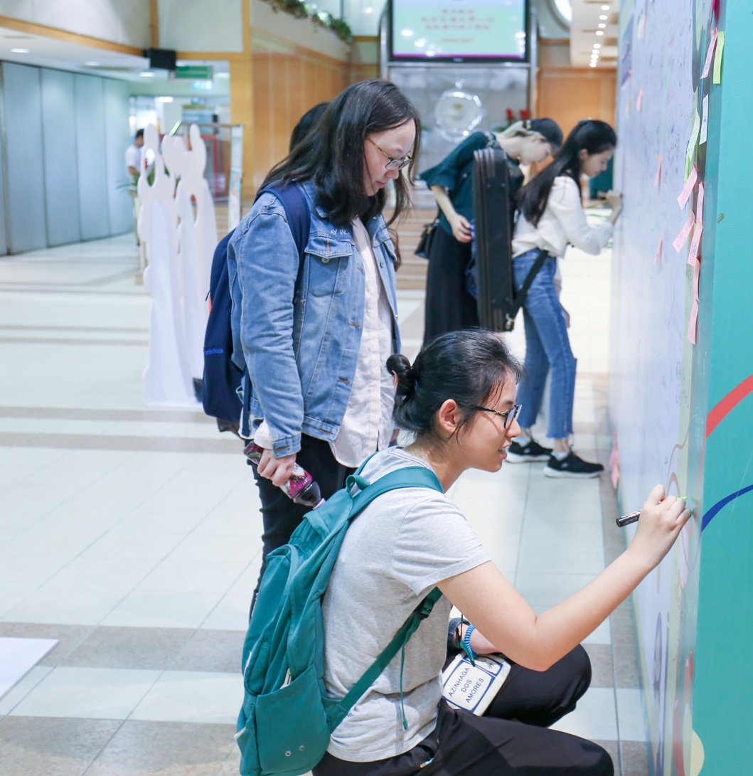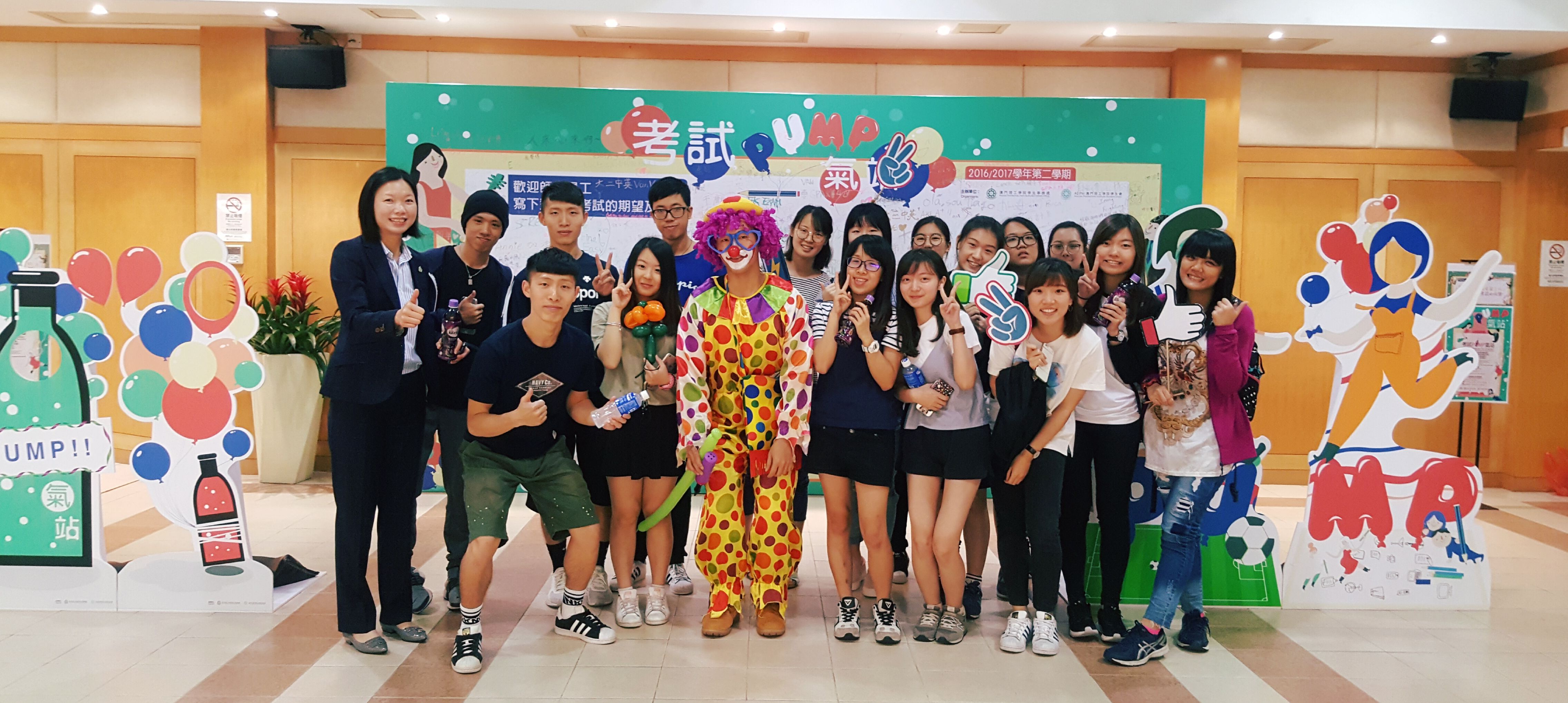 For the purpose of cheering up students for exams and motivating students to prepare for exams with a positive attitude, the Student Affairs Office and Student Union of Macao Polytechnic Institute have distributed free drinks to students, and also set up a “Message Board”, where students can leave their wishes and blessings. Moreover, the Student Affairs Office has invited a senior student who is a balloon artist to twist colourful balloons for students.
