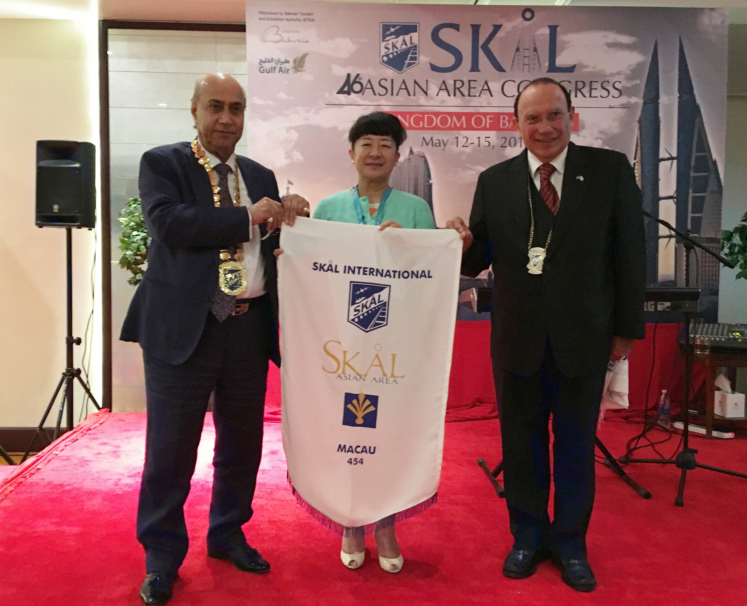 Executive Director of Macao Trade and Promotion Investment Institute, Irene VaKuan Lau, together with the Deputy Director of Macau Government Tourist Office, Cheng Wai Tong and the President of Skål International Macau, João M. Costa Antunesattended the 46th Asian Area Congress, held in Bahrein, on 13 and 14 May. During the said event, Executive Director Irene VaKuan Lau briefed the guests on the strengths and development of Macao´s MICE industry.