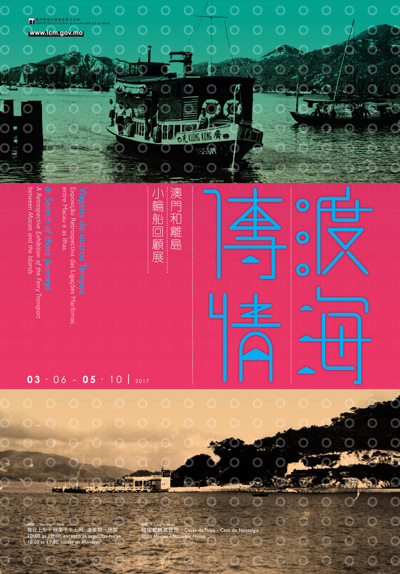 The exhibition “In Search of those Journeys – A Retrospective Exhibition of the Ferry Transport between Macao and the Islands” will be open from 3 June to 5 October, at the Nostalgic House of Taipa Houses. Admission is free. The exhibition is open daily from 10am to 7pm (no admission after 6:30pm; closed on Mondays). Guided tours in Cantonese will be available from 3pm to 4pm every Saturday. For more information about the exhibition, please visit the Cultural Affairs Bureau website at www.icm.gov.mo. For enquiries, please contact IC through tel. no. 8988 4000, during office hours.