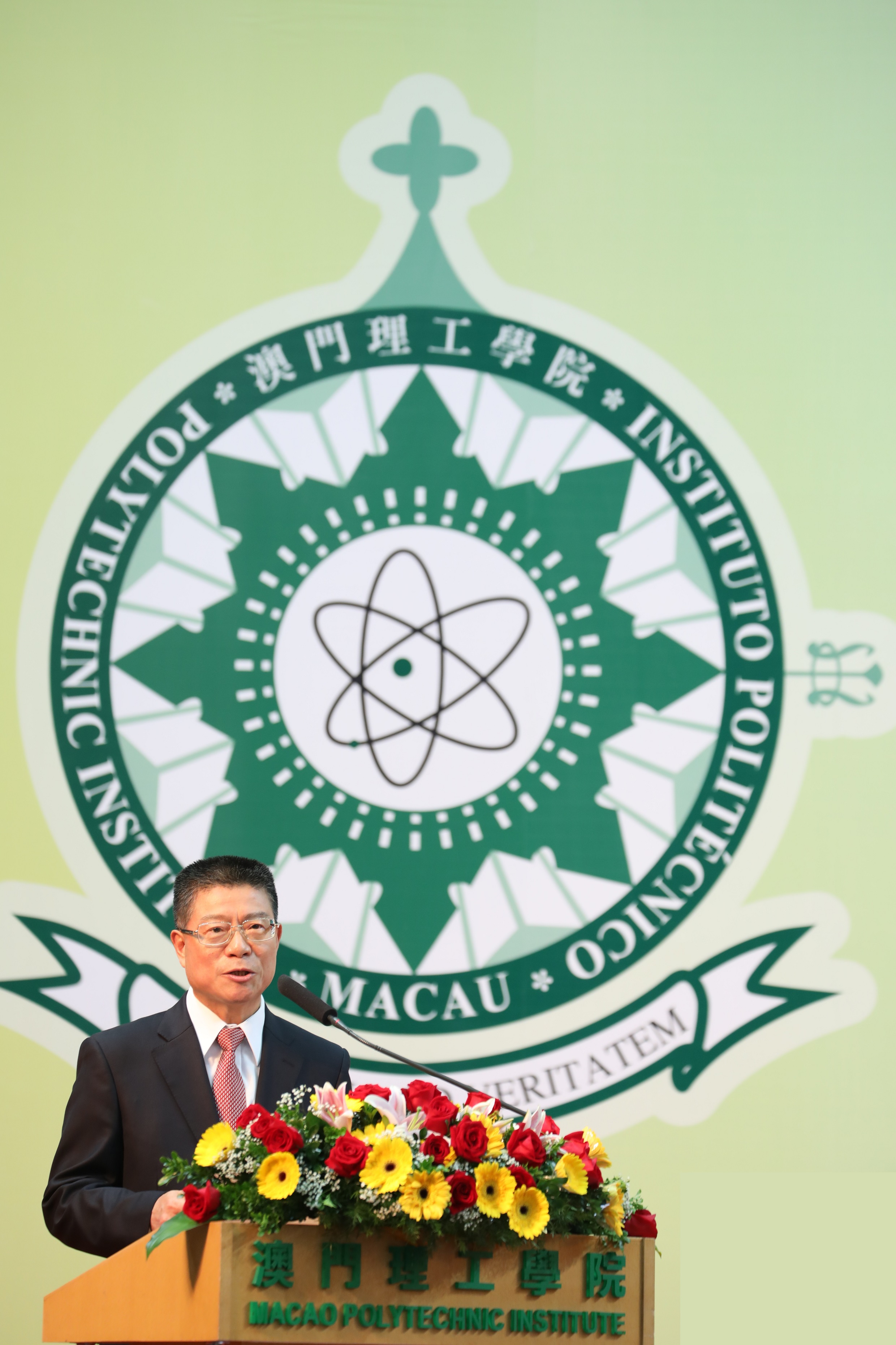 Chio Hoi Lam, a freshman student spoke on behalf of all the new students. Being able to attend the opening ceremony, according to Miss Chio, was particularly meaningful for each and every new student as it means setting sail on a brand-new journey in life. She also shared with the audience her own experience in applying for the program at MPI. Chio stated that her career goal was to become a specialist in the nursing profession upon graduation, and to practice her own ideals and to pay back her family, teachers, and friends for their support and encouragement. She ended her speech by wishing all fellow schoolmates a bright future in their own unique career path after graduation that would also enable them to contribute to building Macao and to giving back to the society as well.