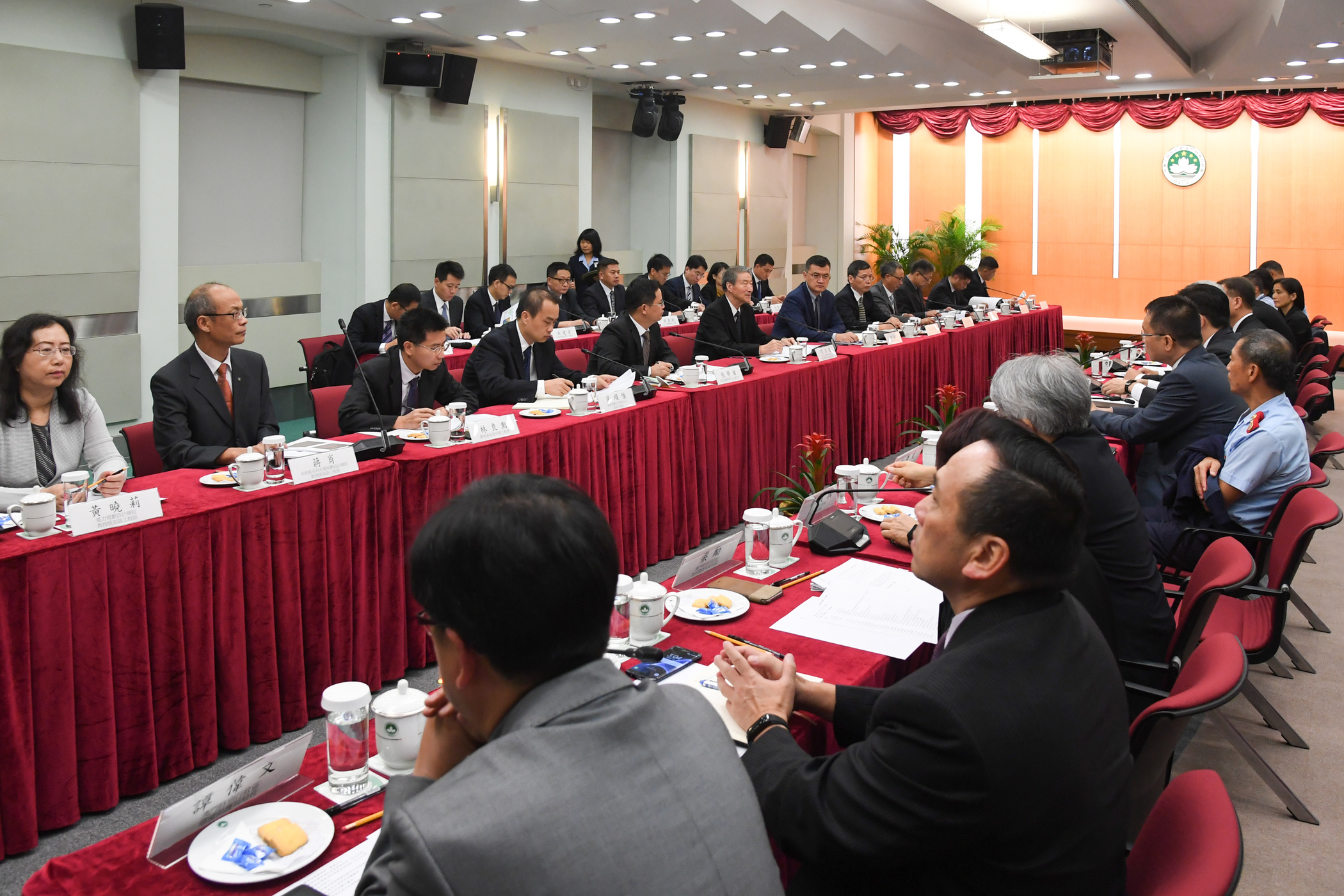 Government officials attending today’s meeting included: the Secretary for Security, Mr Wong Sio Chak; the Secretary for Transport and Public Works, Mr Raimundo do Rosário; the Commissioner-General of the Unitary Police Service, Mr Ma Io Kun; the Chief-of-Office of the Chief Executive’s Office, Ms O Lam; the Director of the Government Information Bureau, Mr Chan Chi Ping; the Director of the Policy Research Office, Mr Lao Pun Lap; and Adviser to the Chief Executive’s Office, Ms Lei Ngan Leng.