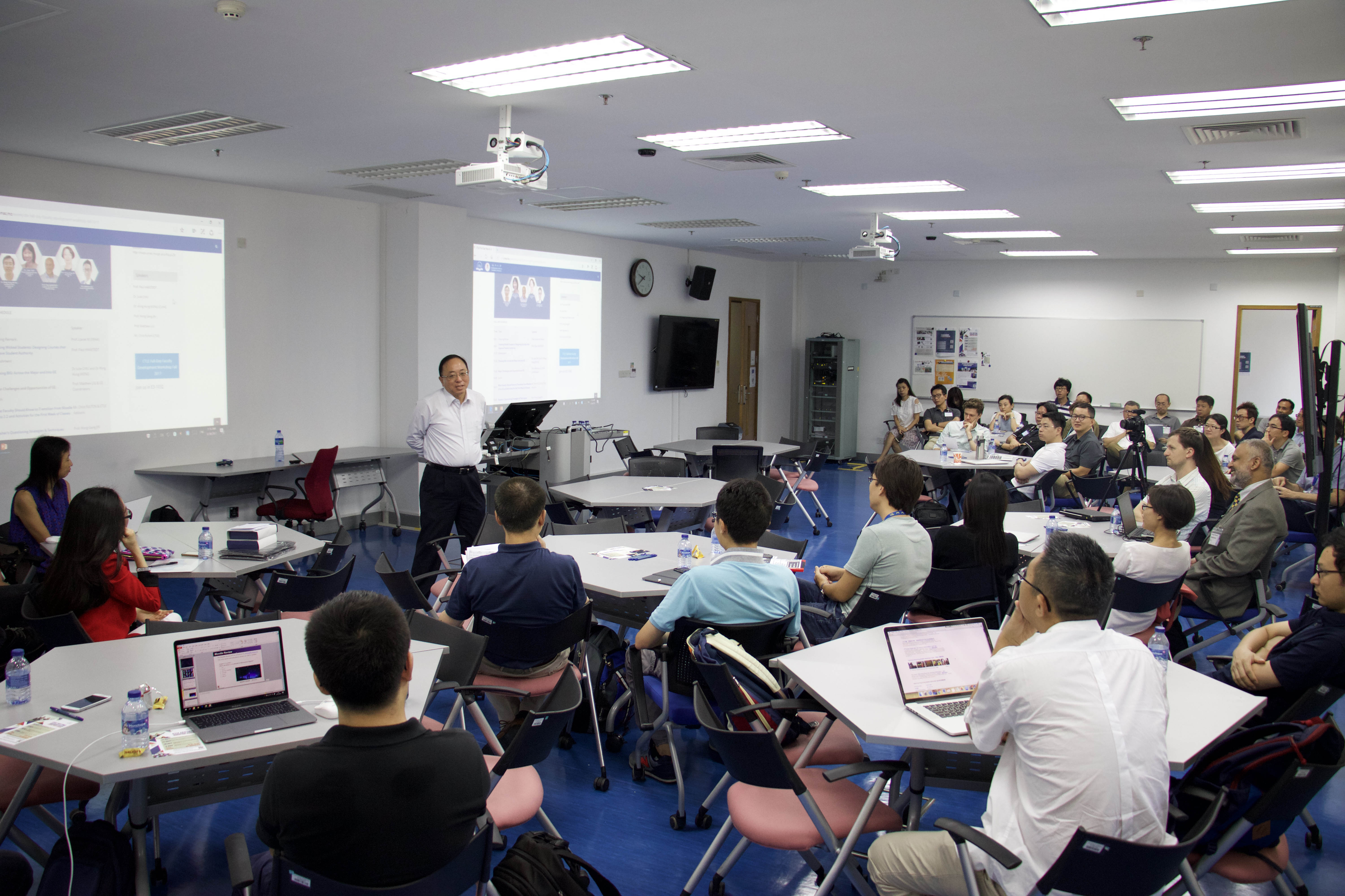 In his opening remarks, Prof Ni said that today's world is more global, knowledge-based, and connected, faced with faster changes. Today's graduates will have several different careers, which are sometimes unrelated to the majors they studied in college. So they need to respond creatively and seize opportunities in a rapidly changing economy by possessing an integrated system of knowledge and a diverse skill set. Prof Ni invited the audience to think about a few frequently-asked GE-related questions: What does one want to achieve through GE? How can one relate GE to discipline-specific education? How can one effectively run large-sized GE classes without losing track of the students’ learning needs? Prof Ni went on to explain that education in the 21st century is beyond discipline-specific training; it is about fostering students’ transferable skills (otherwise known as ‘soft skills’), and preparing students for the challenges in the rapidly-changing digital life, society, and markets.