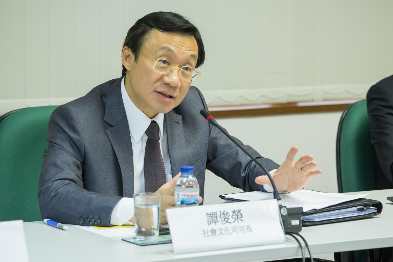 President of the Institute for Tourism Studies, Fanny Vong, Acting President of Cultural Affairs Bureau, Kent Ieong Chi Kin, Advisors of the Office of the Secretary for Social Affairs and Culture, Charles Lam and Stella Leong, Deputy Director of Education and Youth Affairs Bureau, Leong Vai Kei, Vice President of the Committee of Cultural Industries and the Convener of the Task Group for the Promotion of Gastronomy and Cultural Industries, Hsu Hsiu Chu, Director of Board of Administration of Cultural Industries Fund, Davina Chu, as well as representatives of the Civic and Municipal Affairs Bureau, Economic Bureau, Macao Trade and Investment Promotion Institute, Labour Affairs Bureau and Environmental Protection Bureau attended the meeting.