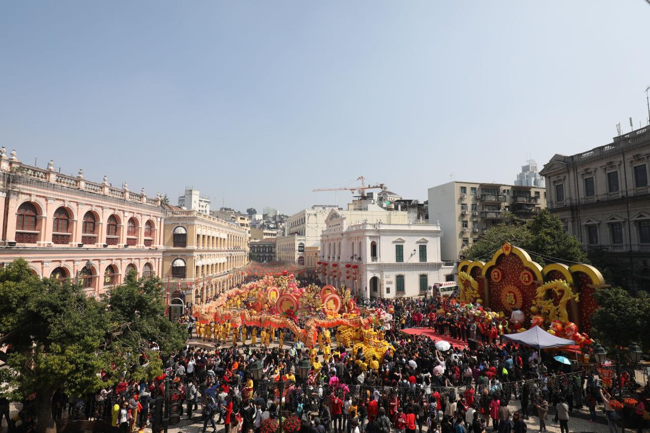 The 238-meter-long golden dragon undulated across major tourist districts, drawing many local and visiting spectators along the way. The spectacle was both harmonious and bustling. The golden dragon demonstrated vigorous moves accompanied by vibrant young lions. The lively performance carries the meaning that Macao will thrive with unparalleled vitality in the Year of the Dog and reach new milestones of development. The Chinese zodiac animal “Dog” symbolizes prosperity and auspiciousness. The performance also conveys these auspicious wishes to Macao residents in the Year of the Dog as all join hands to unfold a brighter future for the city.