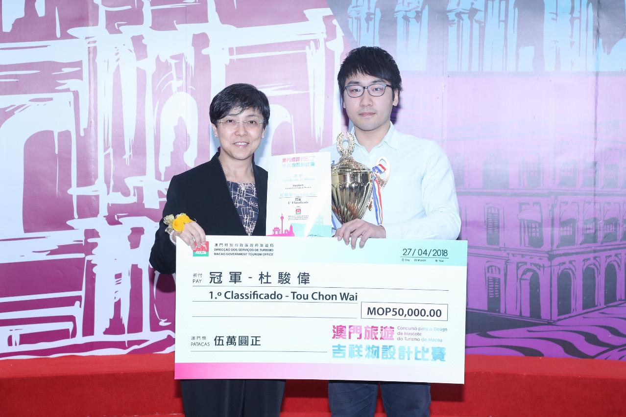 A prize-giving ceremony was held today (27 April) to present first, second and third prizes as well as ten merit prizes to winners of the Design Contest for Macao Tourism Mascot. The Design Contest for Macao Tourism Mascot was organized by the Macao Government Tourism Office (MGTO) together with the co-organizers, the Cultural Affairs Bureau and the Cultural Industry Fund. The mascot models of the 13 top-rated entries selected at the preliminary stage are showcased at the Macao Pavilion of the 6th Macao International Travel (Industry) Expo (MITE) starting today. Residents and visitors are welcomed to view the mascot models during the three-day Expo.