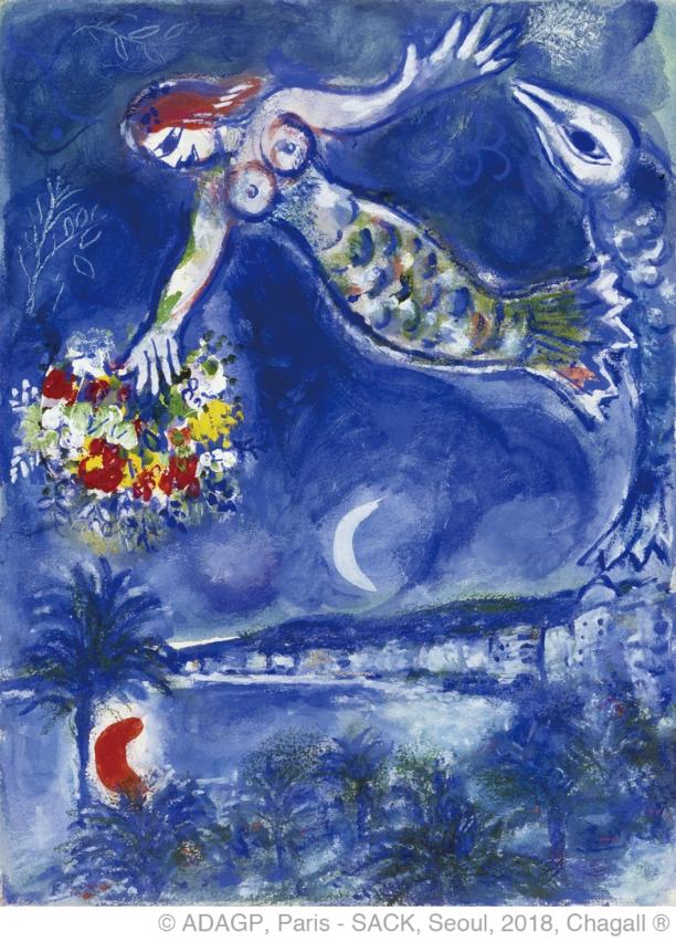 This exhibition explores Chagall’s use of light and colour in the works he created between the 1950s and the 1970s, a period during which the painter drew inspiration from the bright landscapes of the Mediterranean and the Côte d’Azur. Chagall’s artistic universe is based on memory and imagination. In the context of his time, his works often feature dazzling and fantastic colours. Through this exhibition, the public will enjoy a poetic artistic journey and enter the artist’s creative world.