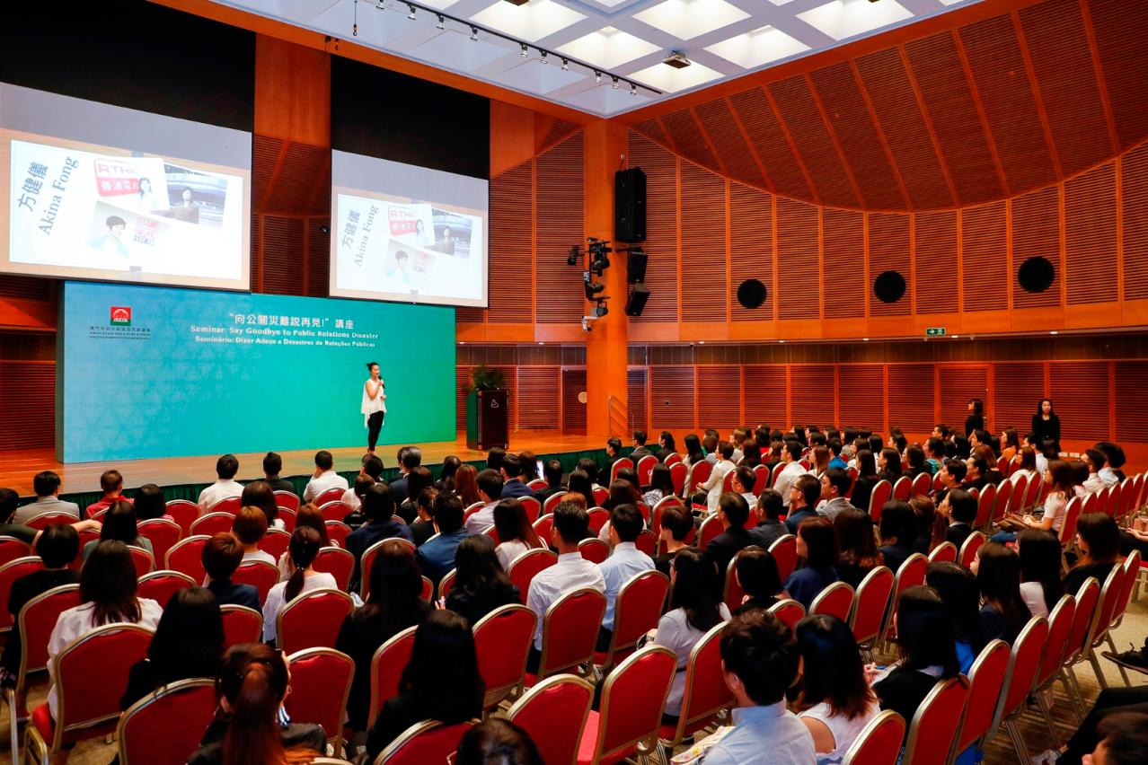 Macao Government Tourism Office (MGTO) organized a seminar on the trending topic of “Say Goodbye to Public Relations Disaster” for tourism industry personnel and MGTO staff. At the Office’s invitation, acclaimed media and public relations expert from Hong Kong, Akina Fong, shared about public relations on social media, disasters that may arise and offer possible solutions to such disasters. The Seminar attracted close to 170 participants. MGTO Director Maria Helena de Senna Fernandes and Deputy Director Cheng Wai Tong attended the seminar.