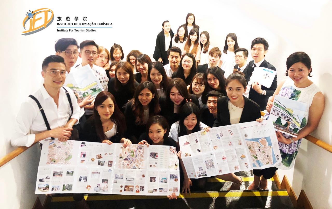 Students from the Tourism Retail and Marketing Management at the Institute for Tourism Studies engaged in a consultancy project to serve the Pousada de Mong-Há (Educational Hotel of IFT) in Macao SAR, China. The course leader, Dr. Fernando Lourenço led students to incorporate the idea of community-based tourism to create new values for hotel guests. The aim of the project was to develop a map to guide hotel guests to explore the community around the location of the hotel. In order to do this, students researched the community and produced a database with information of all the businesses in the area, public facilities, traditions and heritage, and events. Subsequently, students developed and produced many innovative concepts for a new map. The outcomes from the research and development were greatly appreciated and the hotel manager noted that they will certainly apply the ideas derived from the project.