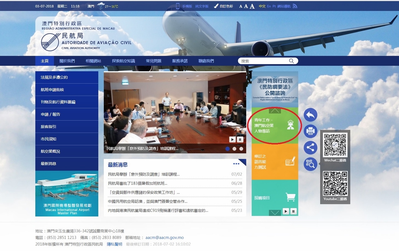 To cope with the objective of the Macao SAR government in enhancing the work for the youth, the Civil Aviation Authority of Macau SAR (AACM) will launch the “Youth Project – Interviews with aviation professionals” series in this July till January next year. The series share the interview stories of the different professionals in the industry who will talk about their personal experiences and the advice they give to the young people. A total of 27 professionals representing 7 organizations are participating in this project and will be telling their stories.