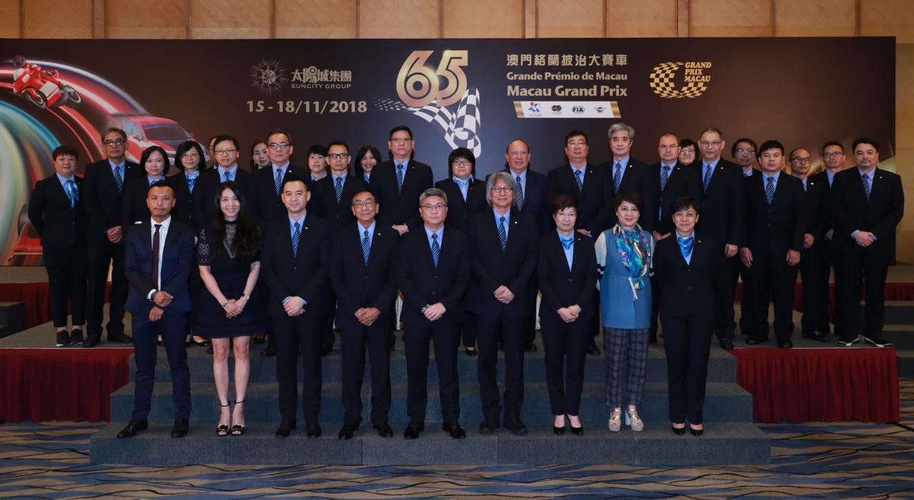 The press conference was attended by: Mr. Pun Weng Kun, President of the Sports Bureau of the Macao SAR and Coordinator of the Macau Grand Prix Organizing Committee (MGPOC) ; Mr. Charles Lo Keng Chio, President of the General Assembly of the Automobile General Association of Macao-China; Mr. Chong Coc Veng, Board of the Directors of the of Automobile General Association of Macao-China and Coordinator of Sporting Subcommittee of MGPOC; Mr. Allen Lau Cho Un and Ms. Christine Lam Lin Kio, Deputy Coordinators of the MGPOC; Ms. Gina Lei, Senior Vice President Corporate & Community Relations of Suncity Group; Ms. Angela Leong, Managing Director and Chief Administrative Officer of Sociedade de Jogos de Macau, S.A. (SJM); and Mr. Lei Weng Fai, Chief Executive Officer of FOOD4U.