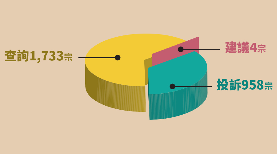 The Consumer Council handled a total number of 2,695 cases in the first half of 2018, there are 958 complaints, 1,733 inquiries and 4 suggestions.