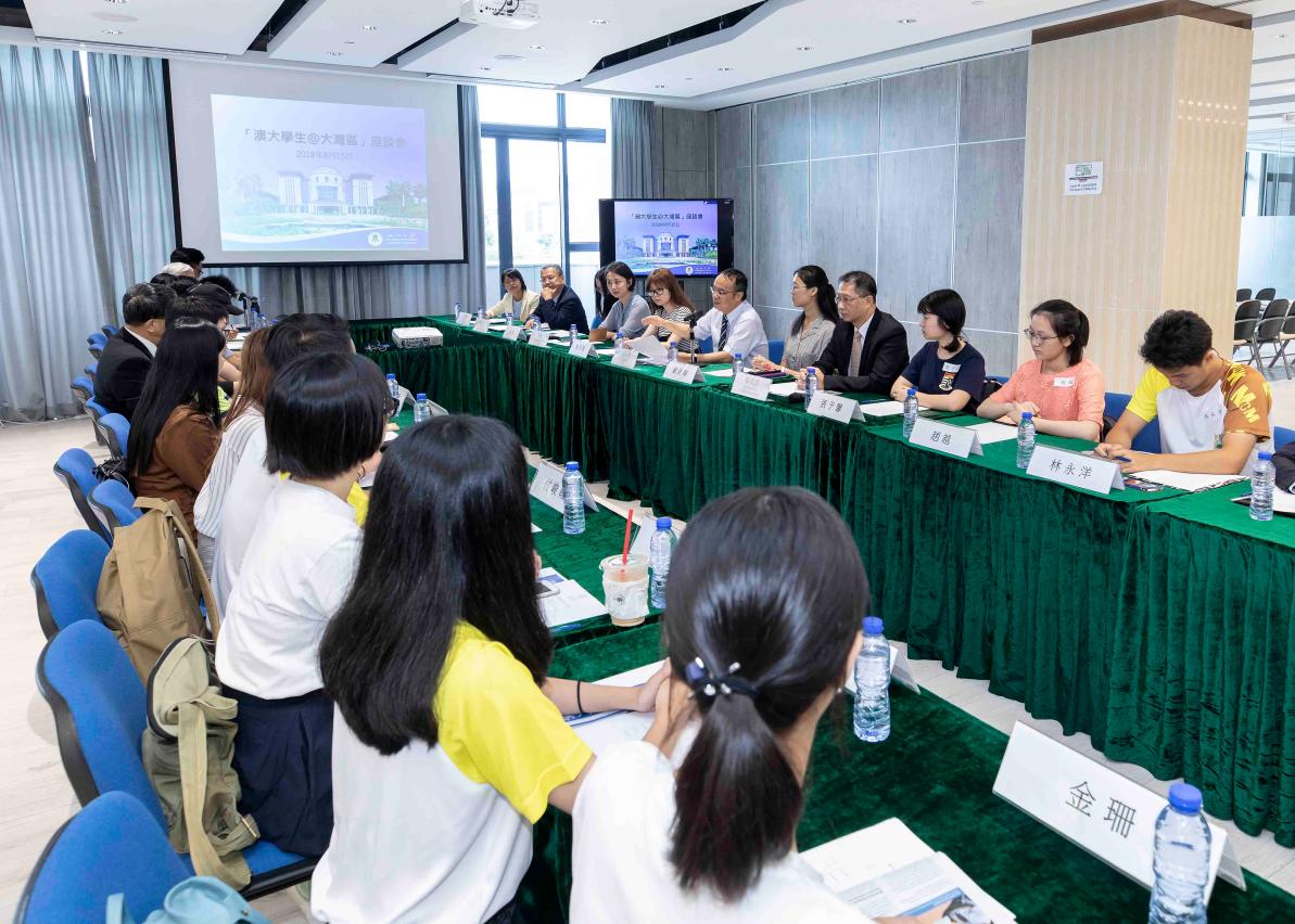 During the meeting, a PhD student from the Faculty of Business Administration shared his experiences of starting a business in the Greater Bay Area. He thanked UM for nurturing him and helping him find the right career path. A new student from the Department of Portuguese said that she loves the freedom in UM’s academic environment, which offers an opportunity for her to meet people from different countries and regions and develop interpersonal communication skills. Guests in the event included representatives of the Liaison Office of the Central People's Government, Education and Youth Affairs Bureau, and the Economic Bureau, as well as UM Institute of Collaborative Innovation Interim Director Jerome Yen, Dean of Students Paul Pang, Communications Office Director Katrina Cheong, and Global Affairs Office Director Cindy Lam.