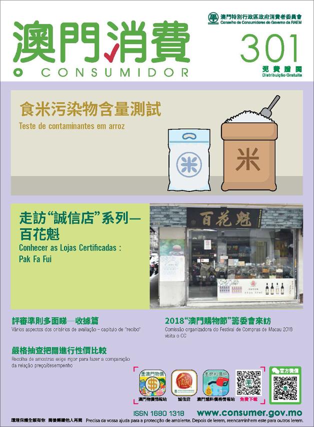The latest magazine also features on the work of the Consumer Council and introduces consumers the testing work of the Council, the assessment criteria of “Certified Shops”, and other recent activities. Consumer Report is now available free of charge at the Council (Av. Horta e Costa, N.º 26, Edf. Clementina Ho), and the service counter of the Council at Macao SAR Government Service Centre (Rua Nova da Areia Preta, Nº52), Public Information Centre at Vicky Plaza, libraries, and bookstores. Consumers may also access the magazine online on the Council’s official website (http://www.consumer.gov.mo) and WeChat official account.