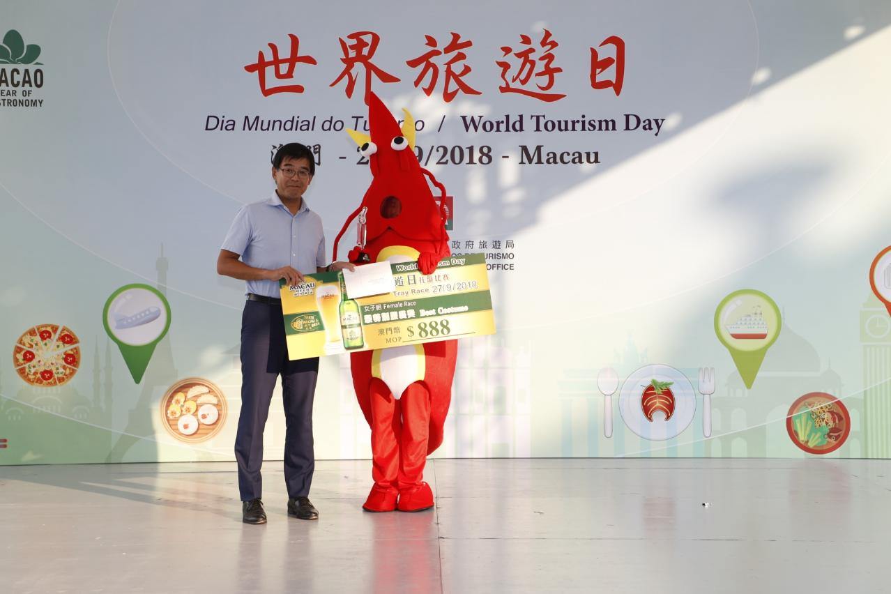 The Tray Race attracted some 160 participants representing different hotels and restaurants in Macao this year. The first prize in the men’s category went to Rhoderick Robledo Garcia on behalf of The Venetian Macao Resort Hotel, whereas Lory Ann Pama De La Cruz from Galaxy Entertainment Group won the first prize in the women’s category. Themed around the “2018 Macao Year of Gastronomy”, the Best Costume Awards of this year were presented to Tat Vinh Khai and Huang Lin Di representing Galaxy Entertainment Group and Future Bright Group respectively.