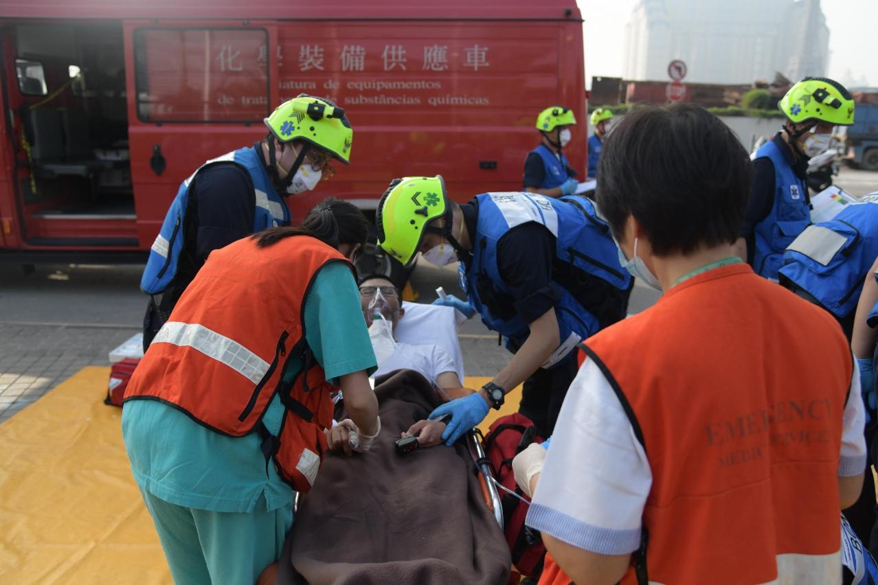 An additional 49 personnel from the PLA Macao Garrison took part in the drill. They joined the police efforts regarding detection of ‘dangerous substances’ as well as ‘disinfection’ and ‘decontamination’ of incident scenes.