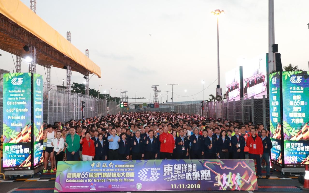 Prior to the start, Dr. Alexis Tam Chon Weng, Secretary for Social Affairs and Culture and Chairman of MGPOC, Mr. Pun Weng Kun, President of the Sports Bureau and Coordinator of MGPOC, and Mr. Li Guang, General Manager of the Bank of China Macau Branch, blew the horn to herald the start of the race. The fun run, which brought together sport and charity, saw participants take to the 6.2km Guia Circuit and run past Reservoir Bend, Mandarin Bend and Lisboa Bend, and race along the Matsuya section of the track.