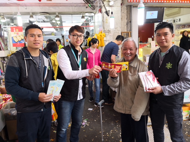 The Consumer Council, Macao Customs, Economic Services, and the Municipal Affairs Bureau (IAM) patrolled together at Tap Seac Chinese New Year Market earlier to distribute promotional leaflets and raise the awareness of vendors in abiding the laws for the order and safety of the market, as well as to safeguard the rights of consumers.