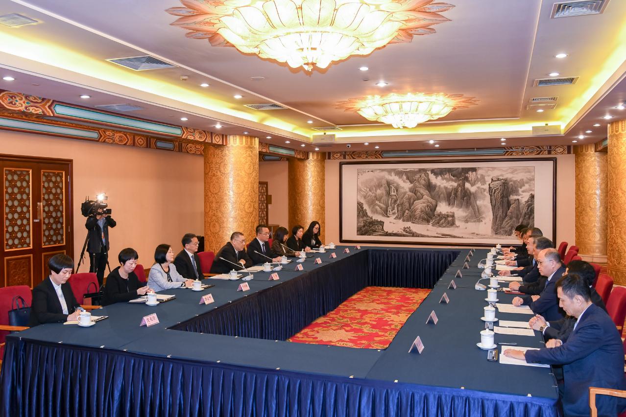 Macao officials attending today’s meeting included: the Director of the Policy Research and Regional Development Bureau, Mr Mi Jian; the Director of the Government Information Bureau, Mr Chan Chi Ping; the Director of the Protocol, Public Relations and External Affairs Office, Ms Lei Ut Mui; and the Director of the Representative Office of the Macao SAR in Beijing, Mr Leong Kit Chi.