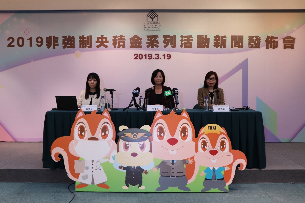 The FSS today (19 March) held a press conference on a series of promotional activities for the non-mandatory central provident fund system for 2019. At the meeting, the representatives of the FSS introduced the latest situation of the non-mandatory central provident fund system and the promotion plan for this year. Since the implementation of the non-mandatory central provident fund system from 1 January 2018, the FSS has been committed to promoting the participation of businesses and individuals. At present, 136 employers have already joined the joint provident fund scheme, of which social service organizations account for about 70%, and the rest include public entities, gaming, hotels, restaurants, education, finance, retail, medical and other commercial organizations, and a total of approximately 40,000 residents have participated in the individual provident fund scheme.