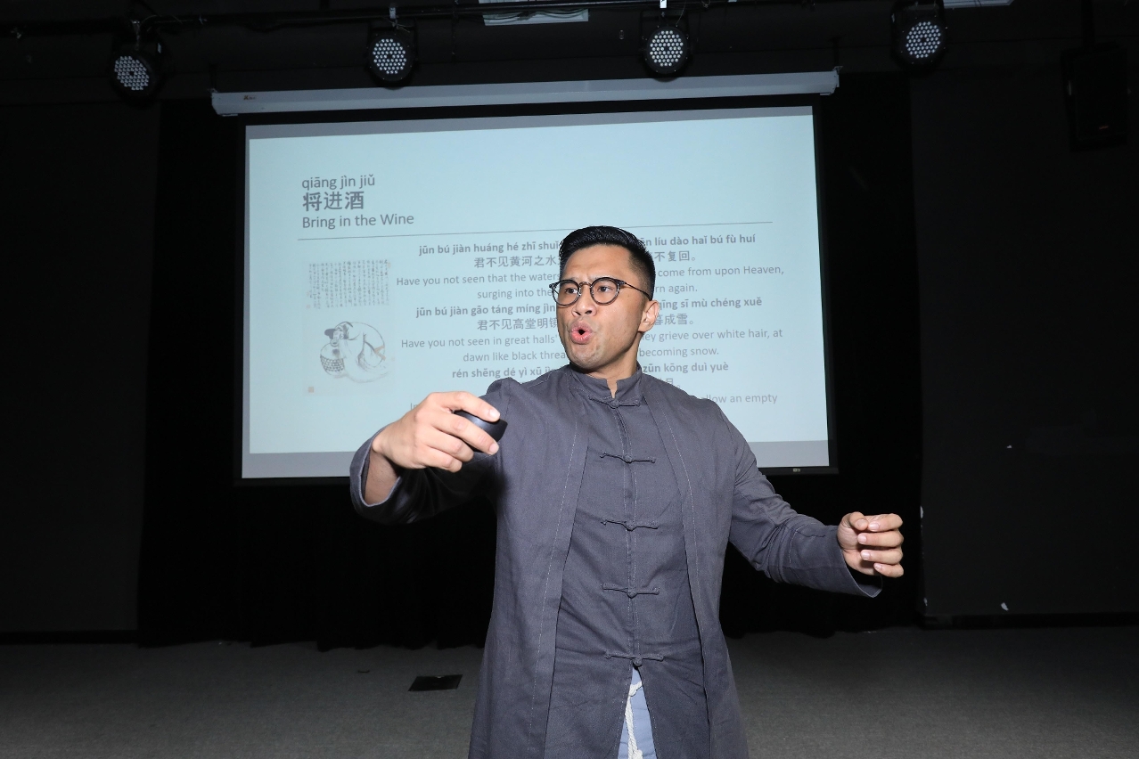 During the ceremony, students from elementary and intermediate courses showcased their language skills: Jeremy De Chavez recited the classical Chinese poem ‘Jiang Jin Yiu’ (將進酒); Claudia Andrea Francomano sang the popular Chinese folk song ‘Mo Li Hua’ (茉莉花); Jeremy De Chavez and Jiyeon Lee sang ‘The Love You Want’ (你要的愛) in Chinese, English, Korean, and Filipino; Hyung Je Cho, Jeremy De Chavez, Mario Wenning, and Claudia Andrea Francomano delivered a humorous language talent show, titled ‘The Chinese Crosstalk’ (三句半); Evan Britanico, Ilidia Mazuze, and Pauline Wagan sang a song adapted from the classical Chinese poem ‘Shuidiao Getou’ (水調歌頭) while playing the guitar. The show climaxed with Joshua Lee singing the famous gospel song ‘Amazing Grace’ in Chinese.