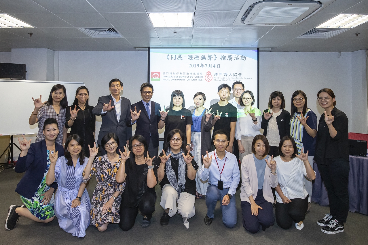 In continuous active support of the Macao Special Administrative Region Government’s scheme to optimize the accessibility of the urban environment in Macao, Macao Government Tourism Office (MGTO) participated in “Empathy‧Silent Journey”, a promotional activity organized by Macau Deaf Association on 4 July, to gain a deeper understanding of the rights and needs of the deaf and auditorily-impaired, and learn about methods and skills of communication with them through engaging in the interactive experience provided.
