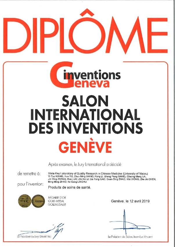 Two inventions by a group of researchers from the University of Macau’s (UM) State Key Laboratory of Quality Research in Chinese Medicine—one is a series of innovative Chinese herbal products and the other is a zebrafish screening system based on microfluidic technology—stood out from nearly 1,000 inventions and won gold awards at the 47th International Exhibition of Inventions of Geneva. The Chinese herbal products are the first modern Chinese herbal products from Macao to win this award.
