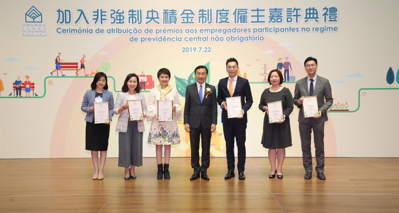 The non-mandatory central provident fund system (the System) was implemented on 1 January 2018. So far, a total of 186 employers have joined the joint provident fund scheme. After a lapse of one year, the Social Security Fund (abbreviated to FSS in Macao) today (22nd July) held another commendation ceremony to commend employers who have joined the System since the end of July last year. At the ceremony, another 21 employers also expressed their support and intention to participate in the System.