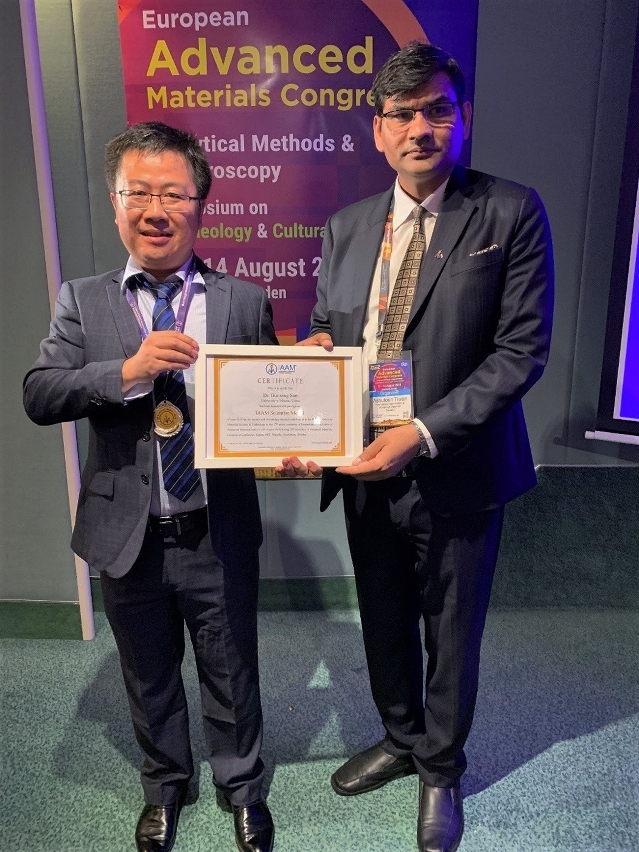 Sun Guoxing, an assistant professor from the Institute of Applied Physics and Materials Engineering (IAPME), University of Macau (UM), recently received the 2019 IAAM Scientist Medal at the 27th award ceremony of the International Association of Advanced Materials (IAAM) held in Sweden, for his outstanding contributions to the field of advanced materials science.