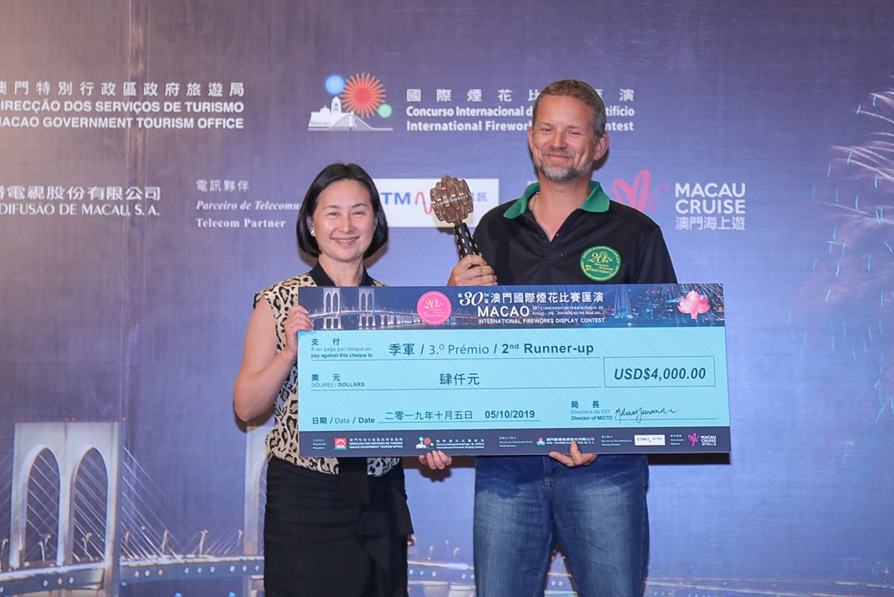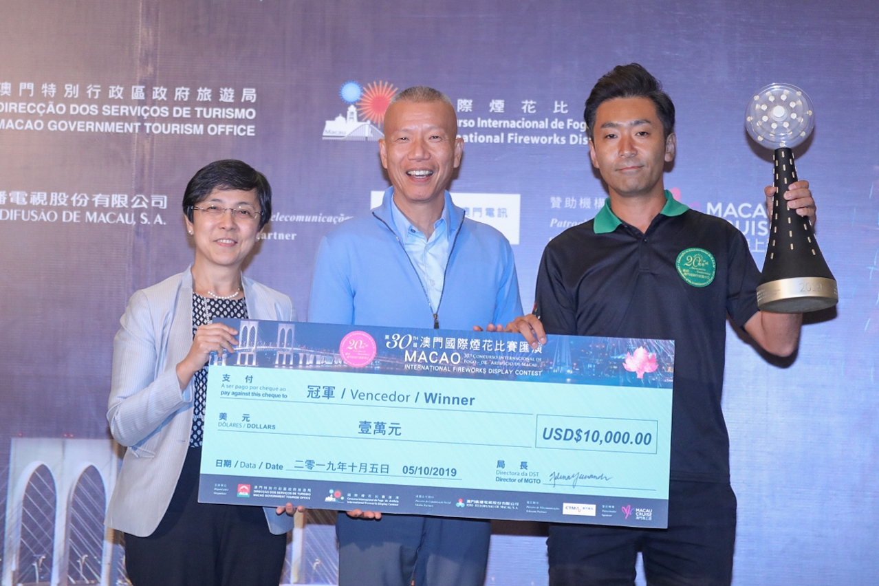 The prize-giving ceremony took place right after the Japanese and Australian teams set the night sky ablaze. Director of Macao Government Tourism Office (MGTO), Maria Helena de Senna Fernandes, and Deputy Director Ricky Hoi joined the ceremony with jury members and other personages, and presented awards to the winners.