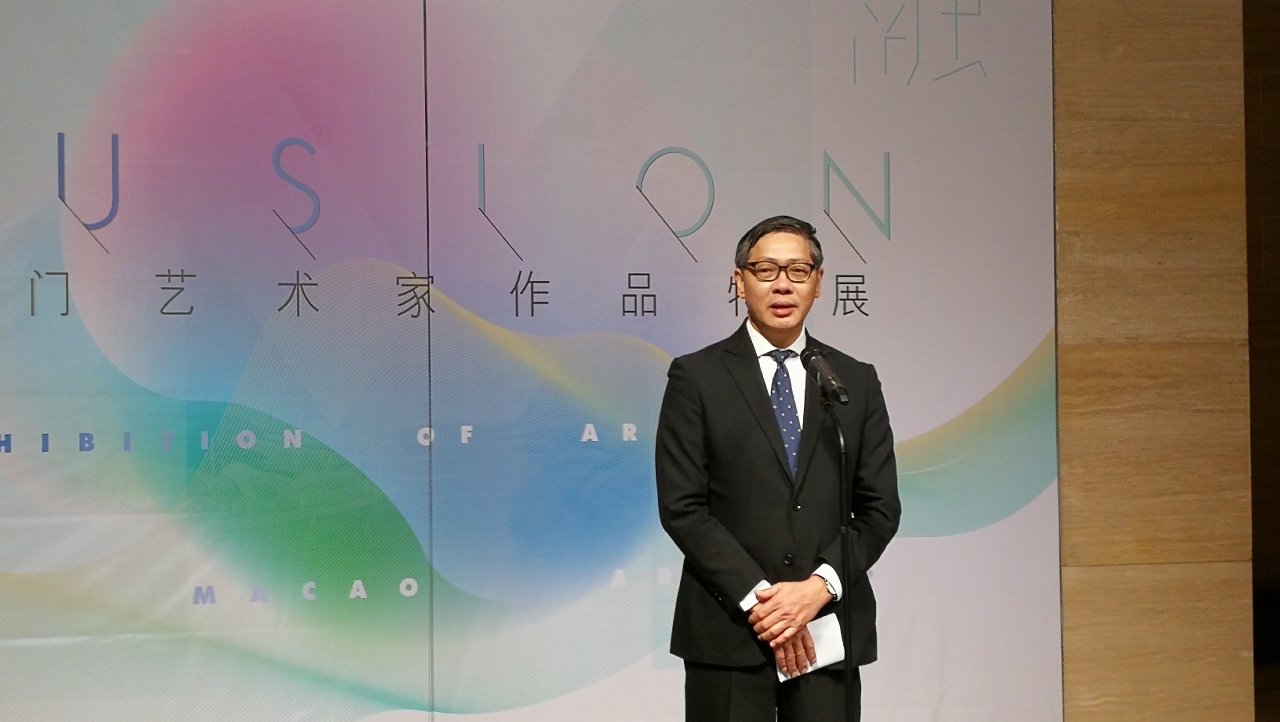 Co-organized by the Macao Museum of Art (MAM), under the auspices of the Cultural Affairs Bureau, and the National Art Museum of China (NAMOC), the exhibition “Fusion – Exhibition of Artworks of Macao Artists 2019” was inaugurated on 8 November at the NAMOC in Beijing, showcasing a total of 76 pieces (sets) of artworks by 65 Macao artists, including calligraphy, Chinese ink paintings, water paintings, oil paintings, prints, mulit-media pieces, ceramics, sculptures and installations. The opening ceremony was held in a lively atmosphere and was officiated by the Member of the Standing Committee of the National People’s Congress and Vice President of the China Democratic League, Xu Hui; the former Ambassador of the People’s Republic of China in Mexico, Qiu Xiaoqi; the Director of the Department of Exchange and Cooperation of the Hong Kong and Macao Affairs Office of the State Council of the People's Republic of China, Wu Wei; the Director of the National Art Museum of China and Vice President of the China Artists Association, Wu Weishan; the Deputy Director of the Palace Museum, Zhao Guoying; the First Class Inspector of the Hong Kong, Macao and Taiwan Affairs Office of the Ministry of Culture and Tourism of the People’s Republic of China, Li Jiangang; the Deputy Director of Beijing Liaison Department of the Liaison Office of the Central People's Government in the Macao S.A.R., Zhang Xueqian; the Deputy Secretary of the Communist Party of China Central Committee of the National Art Museum of China and Secretary of the Central Commission for Discipline Inspection, Zhang Baicheng; the Deputy Secretary of the Communist Party of China Central Committee of the China National Academy of Painting and Secretary of the Central Commission for Discipline Inspection, Wang Qingwen; the Vice President of the Cultural Affairs Bureau, Chan Kai Chon; the Director of the Minsheng Art Museum in Beijing, Zhou Xujun; the former Director of the Nanjing Museum, Xu Huping; the Deputy Director of the School of Design of the Central Academy of Fine Arts, Lu Pinchang and the renowned sculptors Sheng Yang and Cao Chun, with the presence of many cultural and artistic professionals from both cities.