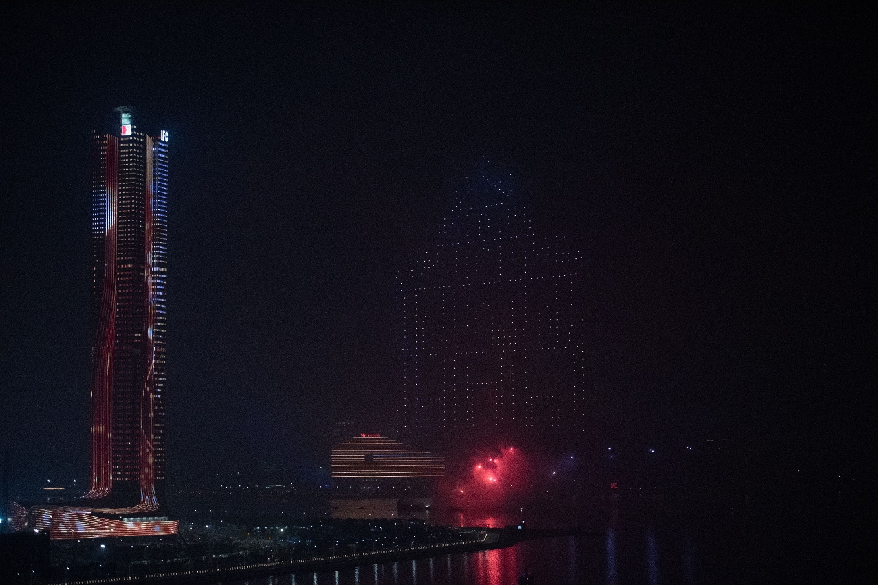Continuing into the second and third chapters – “Glorious Years, Gather in Macao” and “Macao and Zhuhai as one Family, Close Friendship as Neighbors”, glorious fireworks danced in harmony with patterns formed by unmanned boats and drones, creating a symphony of beautiful pictures across the skyline of Macao and Zhuhai. The show culminated in the fourth chapter “Support each other, Build the Bay Area together”, bestowing best wishes for both cities to support each other and join hands to build a brighter future and the beautiful Bay Area together. Tens of thousands of fireworks shells were launched into different patterns in the air, bringing the atmosphere to a climax amid the applause and cheers of spectators.