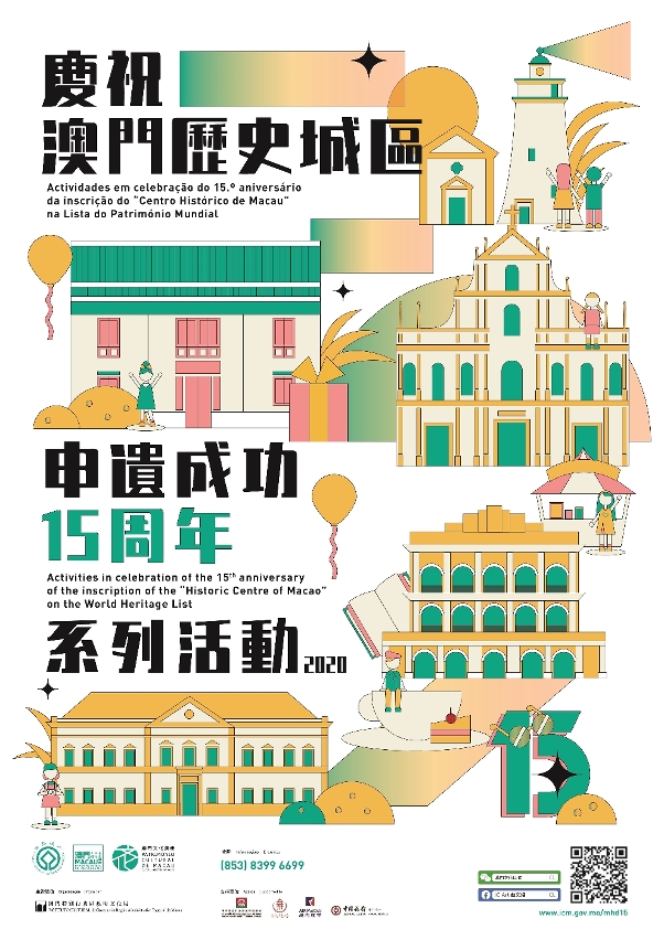 In order to celebrate the 15th anniversary of the inscription of the “Historic Centre of Macao” on the World Heritage List, the Cultural Affairs Bureau (IC, from its Portuguese acronym) will hold a series of activities in July. The event features a total of 28 activities in six series, including a thematic festival, the “World Heritage Open Day”, the “Heritage City Tours - Guided Tours and Illustration Workshop”, “Fun Sharing Cultural Heritage” lectures, a story-writing competition and a WeChat game. With this special series of activities, IC seeks to celebrate the anniversary with the public and encourage residents to experience the beauty of Macao’s World Heritage in their daily lives and to appreciate the city’s precious cultural treasures, thereby conveying the concept of “Appreciating Our World Heritage Together”.