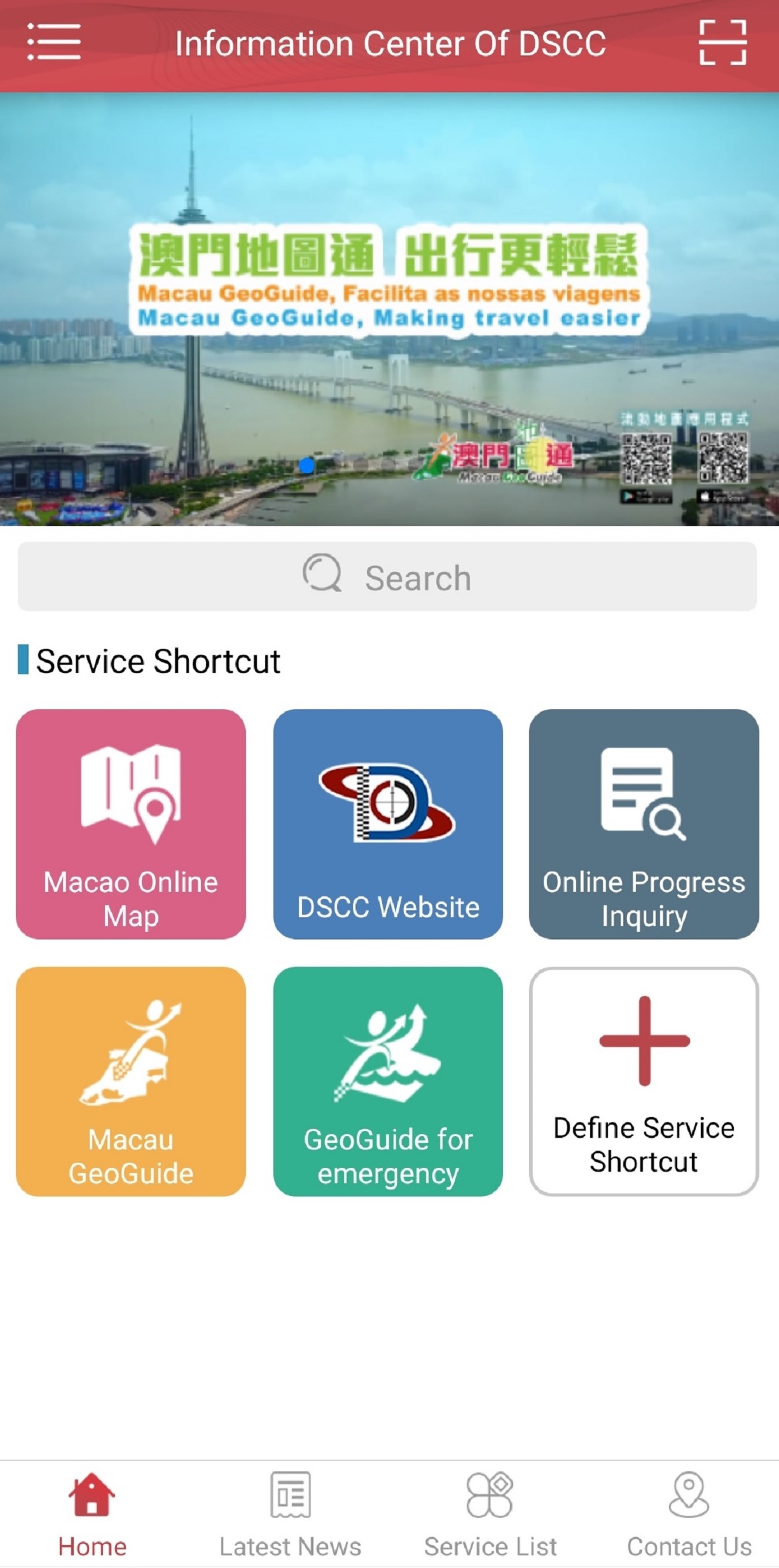 To meet the usage habits of different users, the App is specially equipped with the function to set the display priority of service items. Users can also enter keywords to search for the required service and geographic information, and obtain the latest information of DSCC at any time. The public are welcome to download the App for free by searching “Information Center of DSCC” either in App Store or Google Play, or by scanning the QR code below. For more details, please visit our website (https://www.dscc.gov.mo).