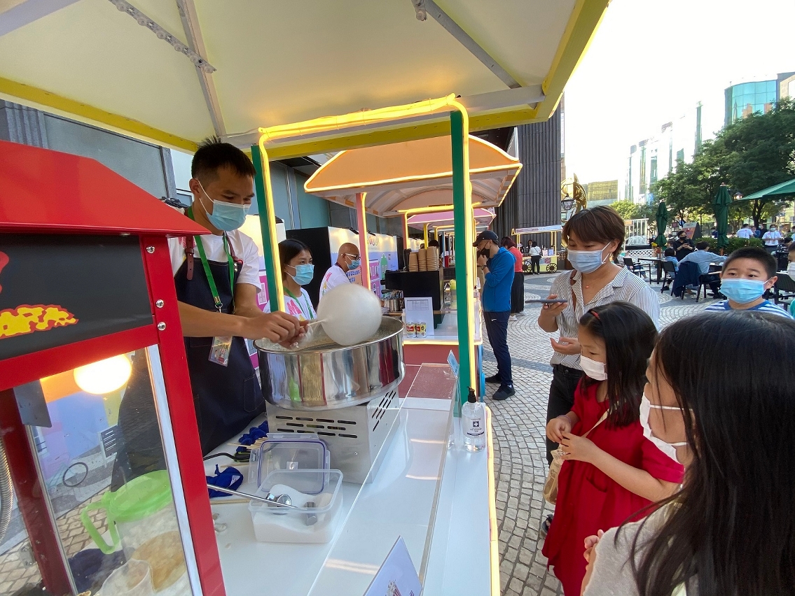 To promote Macao’s gastronomic culture, the Outdoor Café themed as “Gathering at Dusk in Senado Square – in Beijing” features eight food trucks providing Portuguese egg tarts, crab congee, Macanese cuisines and snacks, Macau beer as well as Portuguese white and red wine, among other delights at the Northern Plaza of Macau Center. UnionPay International assists in promotion as a collaborative partner for the Café. There is also a kiosk selling special souvenirs from Macao.