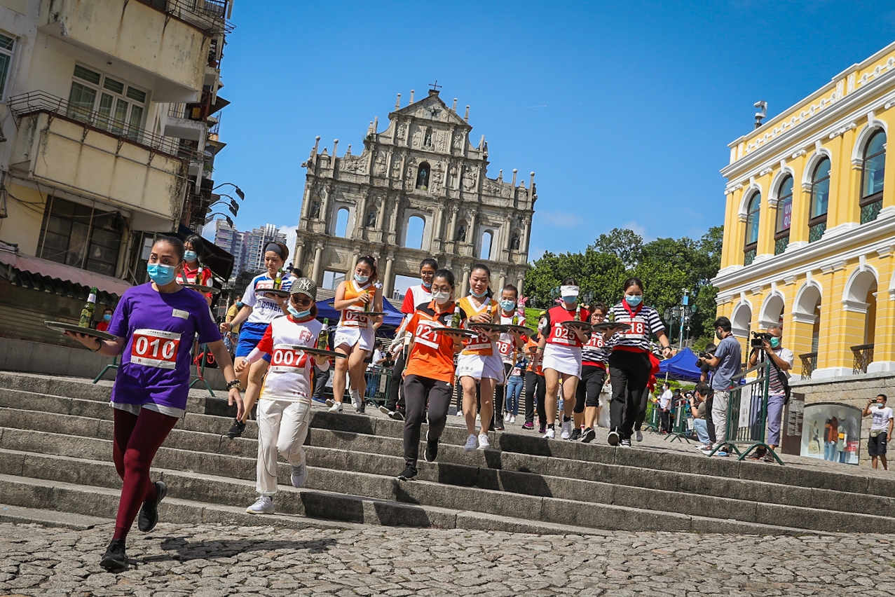 The traditional Tray Race kicked-off in the afternoon. Each balancing a bottle of Macau Beer on the tray, all contestants in different costumes set off from the Ruins of St. Paul’s, ran down the lanes through the Historic Centre of Macao and delivered the beer safely to the finish line at Senado Square the fastest they could. The Race was filled with fun and excitement, attracting people to take pictures and cheer the runners on.
