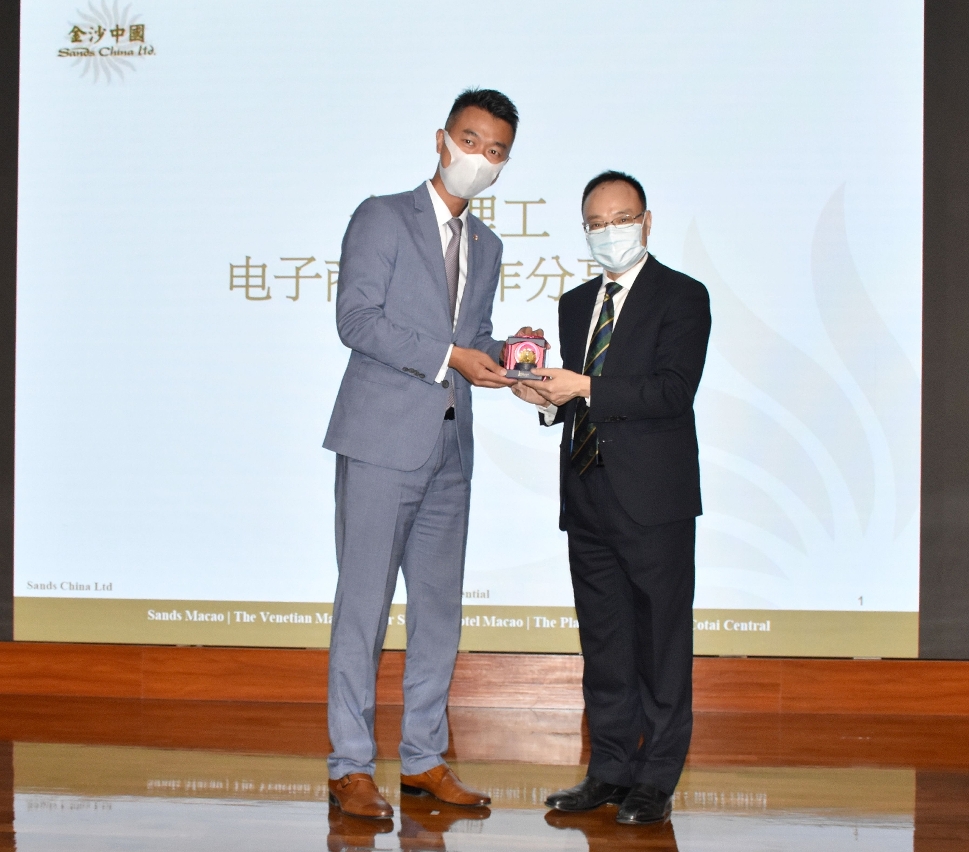 The School of Business of Macao Polytechnic Institute (MPI) and Sands China Limited (SCL) held a sharing session on e-commerce cooperation in the integrated resort industry. The guests from SCL included Mr. Paulo Cheong, Vice President of Human Resources, Mr. Allan Chung, Executive Director of Digital Marketing and e-Commerce, Ms. Candy Ng, Associate Director of Human Resources, and Ms. Sonia Da Conceicao, Manager of Human Resources, amongst others. The MPI representatives were Dr. Samuel Huang, Director of School of Business of MPI, Dr. Linda Lai, Programme Coordinator of Bachelor of E-Commerce, Ms. Christy Cheong, Acting Head of Academic Affairs Department, and Ms. Alice Lao, Head of Student Affairs Office. Two SCL business analysts Mr. Casper Wong and Mr. Gabriel Ho, who were alumni of the E-Commerce Programme of MPI, shared their experience on their journey from school to the workplace. More than 80 people attended the sharing session, including students and teachers from the Bachelor of Business Administration Programme.