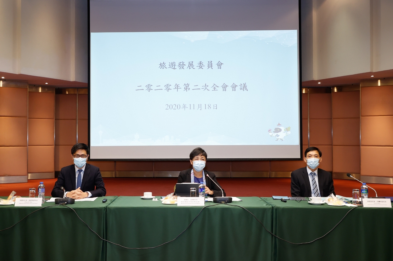 The Tourism Development Committee (CDT, on its Portuguese acronym) convened the second Plenary Meeting of 2020 today (18 November), presided by Director of Macao Government Tourism Office (MGTO) and Acting Committee Chairperson, Maria Helena de Senna Fernandes. CDT members, MGTO Deputy Directors Cheng Wai Tong and Ricky Hoi as well as various department heads attended the meeting. At the meeting, MGTO first presented an overview of Macao’s latest tourism situation, the implementation progress of both the Macao Tourism Industry Development Master Plan and the city’s tourism recovery plan with the results achieved by far. CDT members keenly discussed and raised suggestions on the current tourism situation.